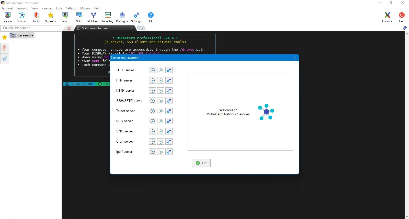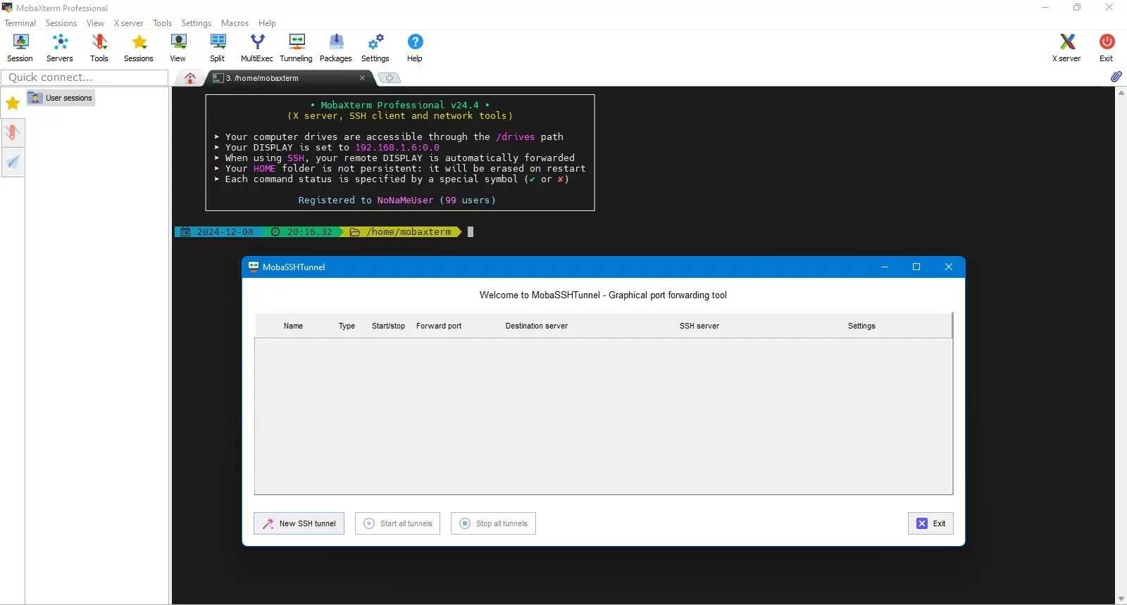 MobaXterm — это многофункциональный инструмент для удалённого доступа и администрирования систем, объединяющий в себе терминал, X-сервер и сетевые утилиты. Программа поддерживает множество протоколов подключения, включая SSH, и предназначена для работы с Linux-серверами, сетевыми устройствами и удалёнными рабочими станциями. Подходит как для начинающих пользователей, так и для профессионалов в области IT.