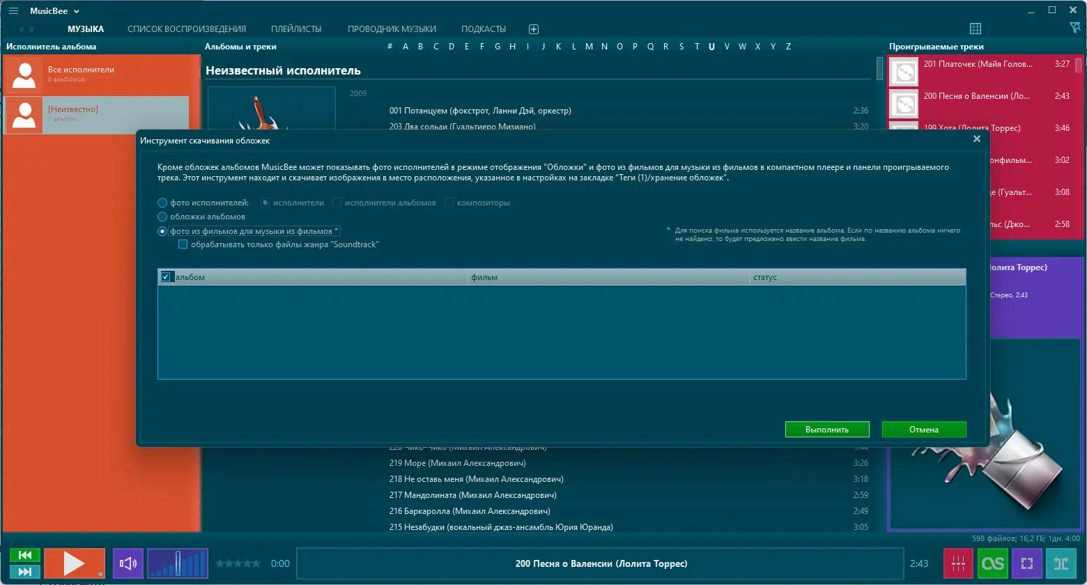 - Автоматическая загрузка обложек, текстов песен и информации об артистах