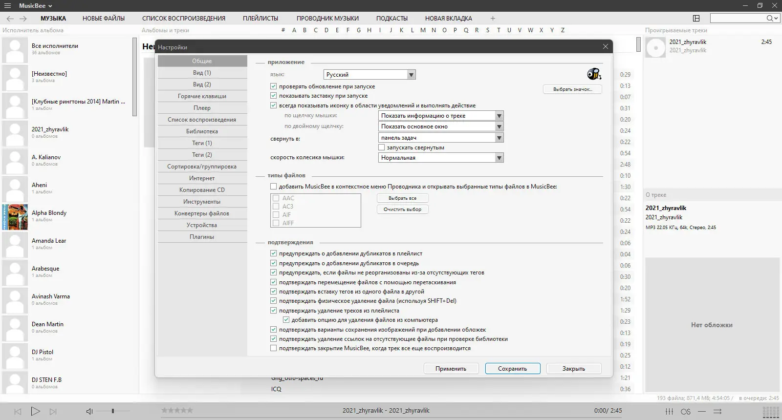 MusicBee эффективно справляется с большими музыкальными коллекциями благодаря оптимизированному движку и многопоточной архитектуре.