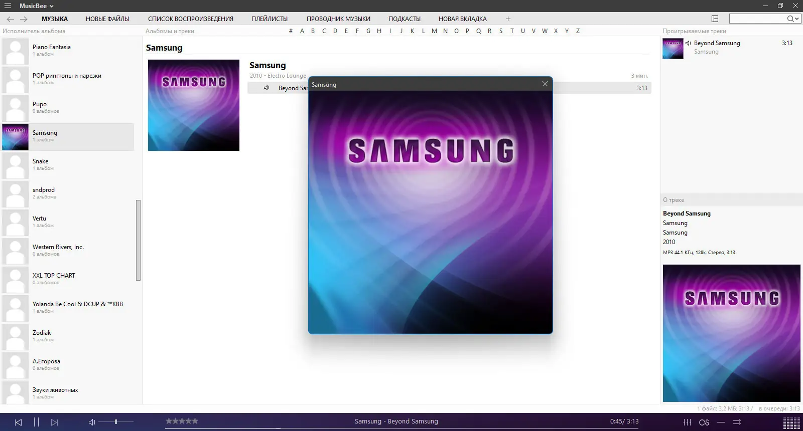 MusicBee — мощный и гибкий аудиоплеер с продвинутыми функциями управления музыкальной библиотекой, встроенным редактором тегов, поддержкой подкастов и радиостанций, а также возможностью синхронизации с мобильными устройствами. Программа подходит как для повседневного прослушивания, так и для тонкой настройки коллекций. Утилита работает стабильно, обладает высокой производительностью и поддерживает множество форматов.