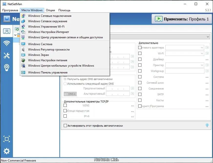 NetSetMan — это легковесное приложение для управления сетевыми профилями, позволяющее быстро переключаться между различными конфигурациями подключения. Программа поддерживает до шести пользовательских профилей с настройками IP, DNS, маршрутов, принтеров и других параметров. Благодаря интуитивному интерфейсу и портативной версии, она идеально подходит для пользователей, часто меняющих место работы или использующих несколько сетевых окружений.