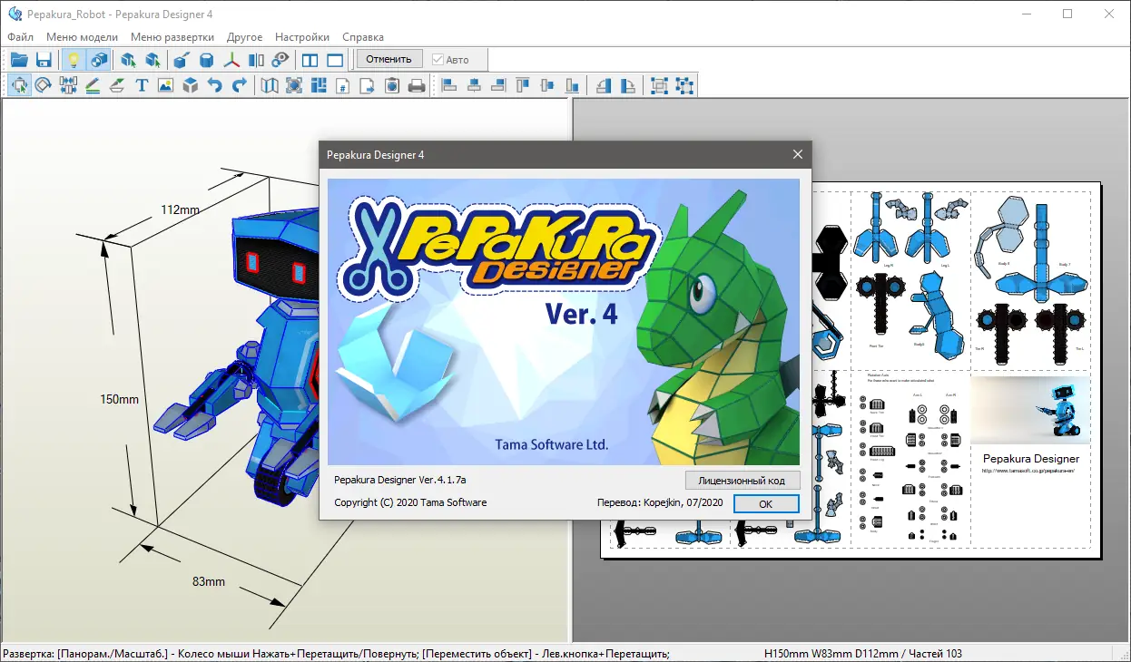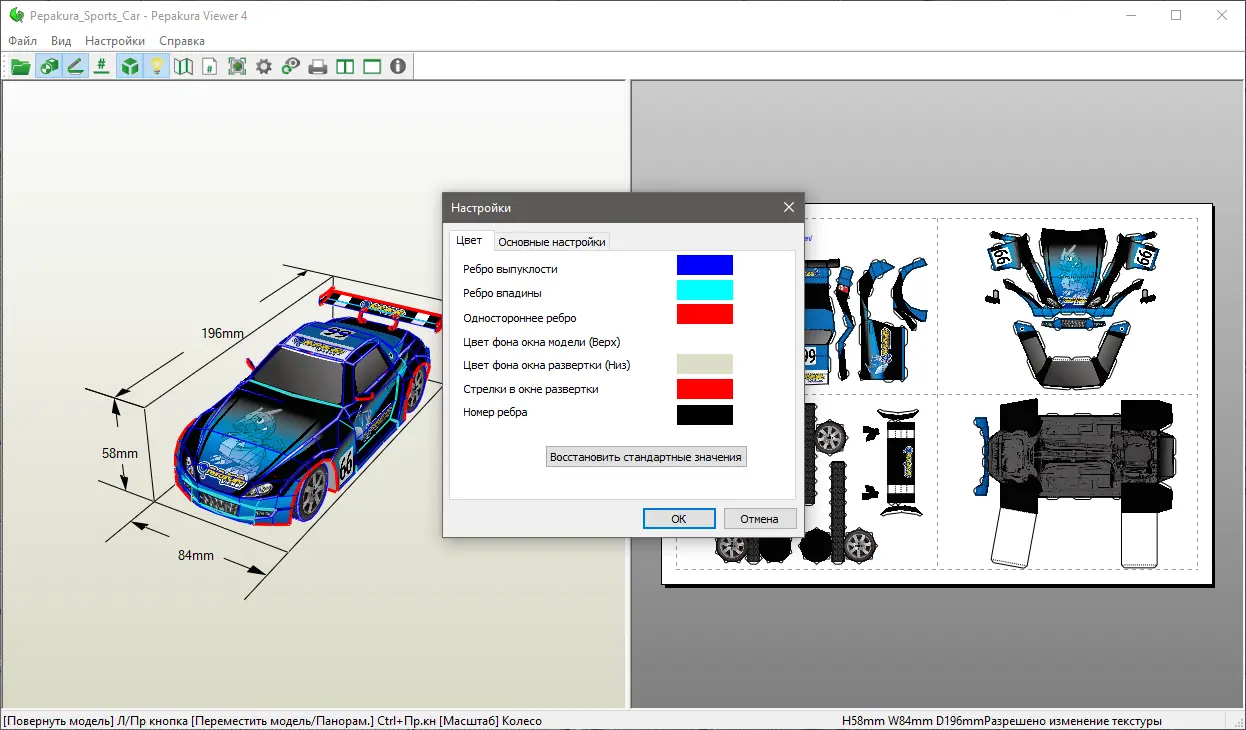 - Совместимость с Pepakura Viewer для просмотра и печати готовых проектов