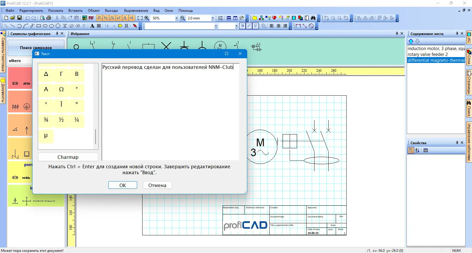 Работа с программой начинается с выбора нужного элемента из структурированной библиотеки, который затем перетаскивается на чертёж. Соединения между компонентами создаются с помощью инструментов линий, при этом программа автоматически распознаёт точки подключения. После завершения схемы можно сформировать спецификацию, включающую ведомость материалов и таблицу соединений. Для дополнительной настройки доступны параметры отображения, масштабирования и экспорта в текстовые или графические форматы. Поддержка Unicode позволяет использовать любые символы, что особенно полезно при работе с международными стандартами.