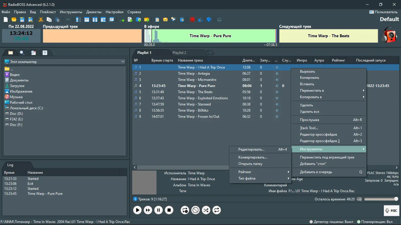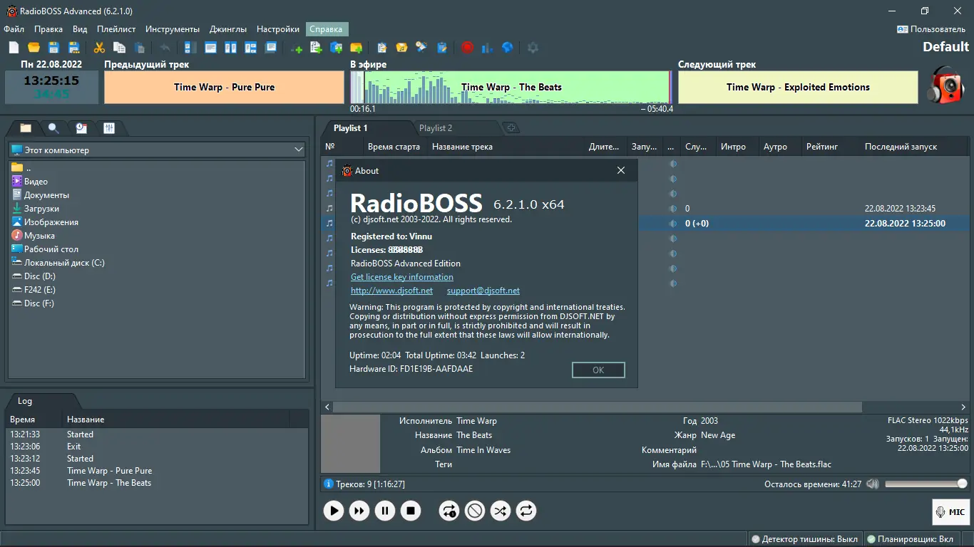 - Автоматическая генерация плейлистов с учётом ротаций, рекламных пауз и джинглов.