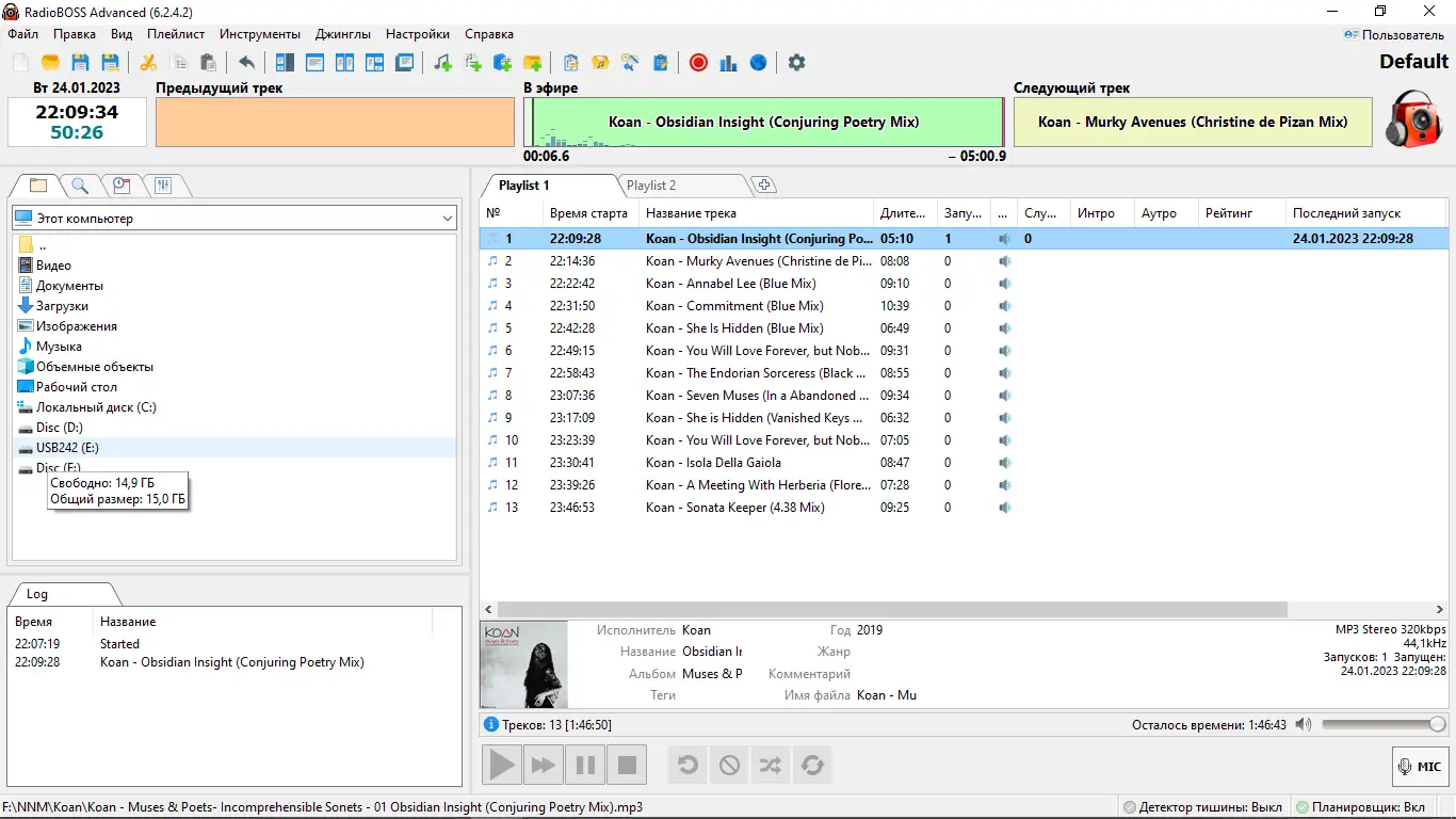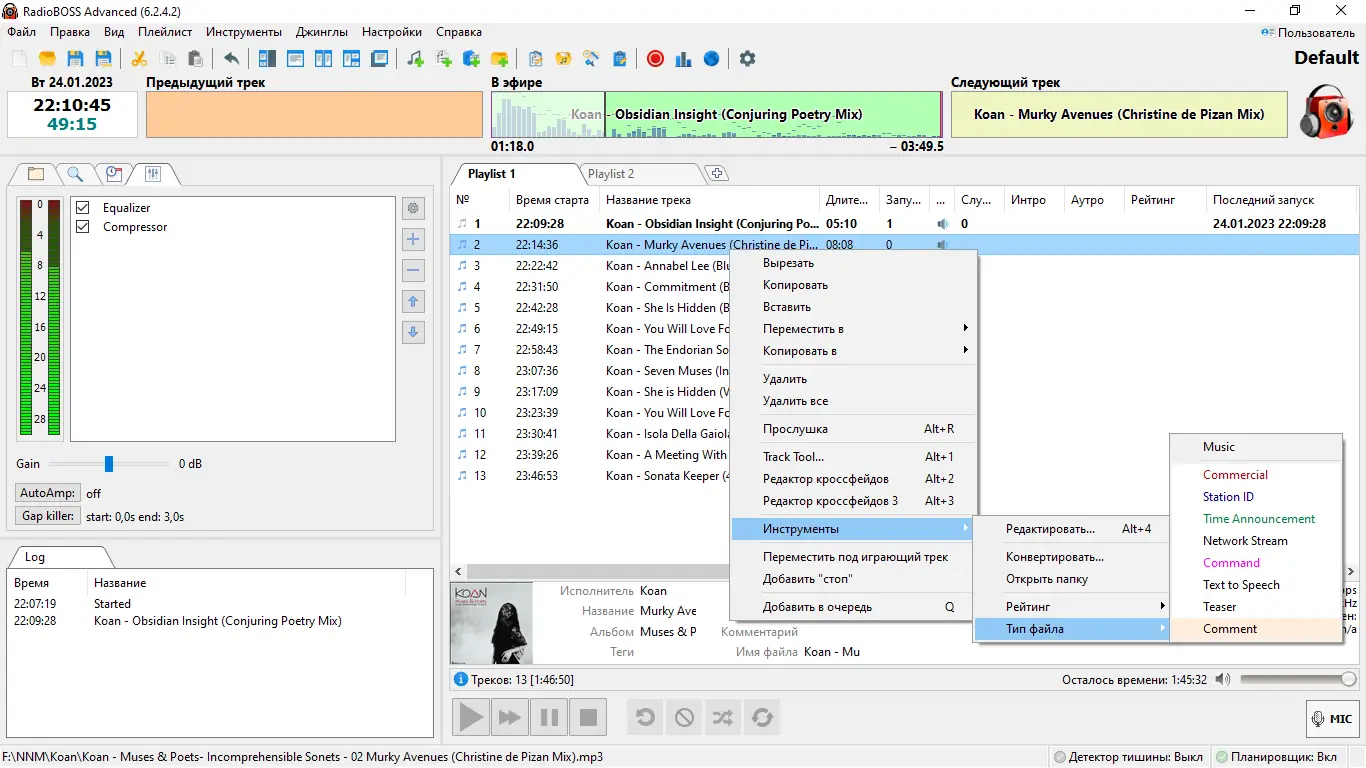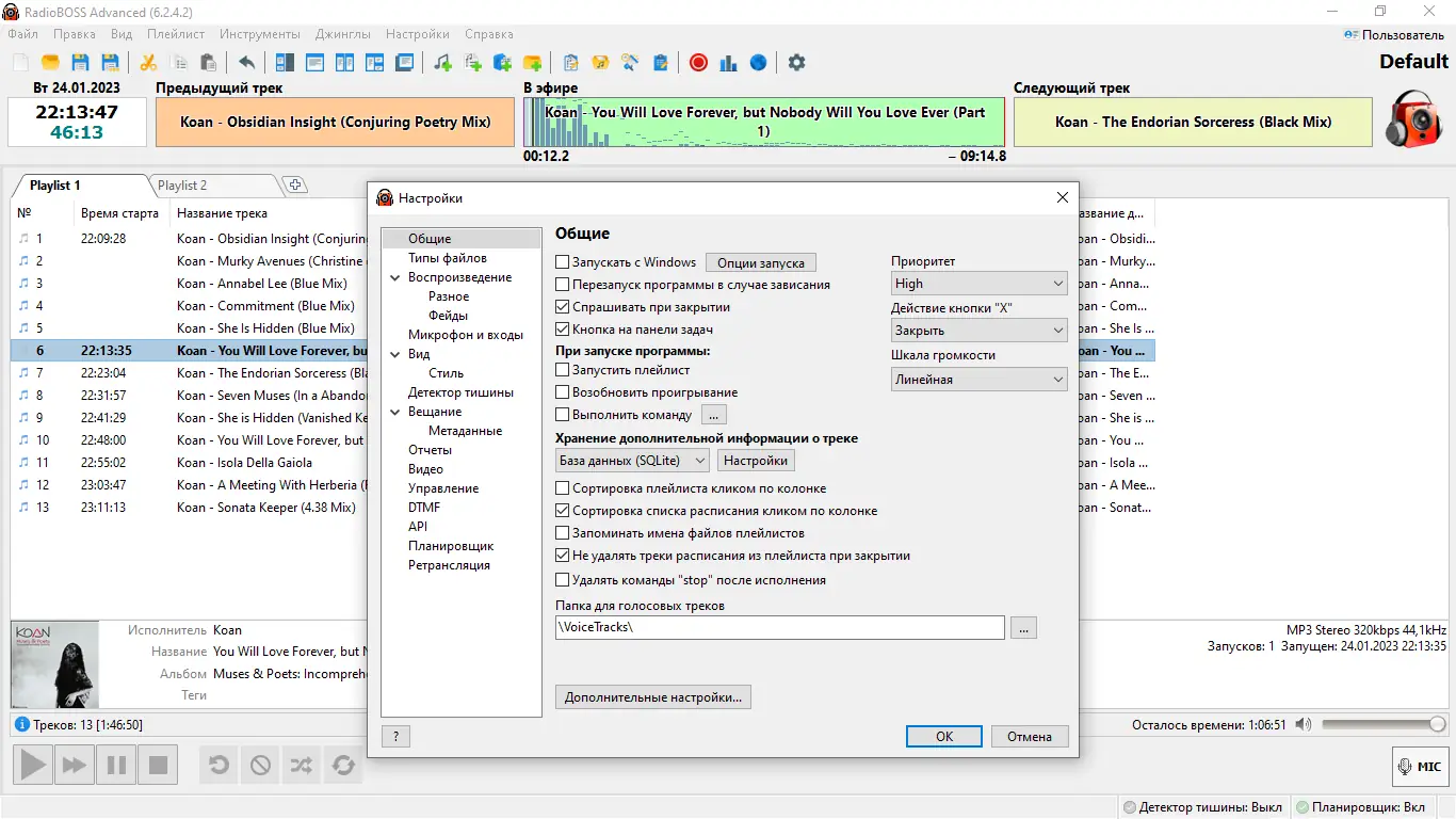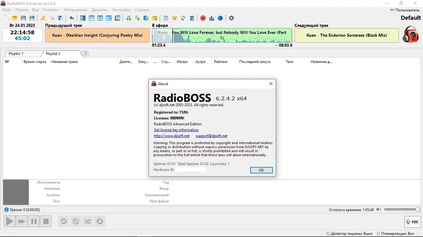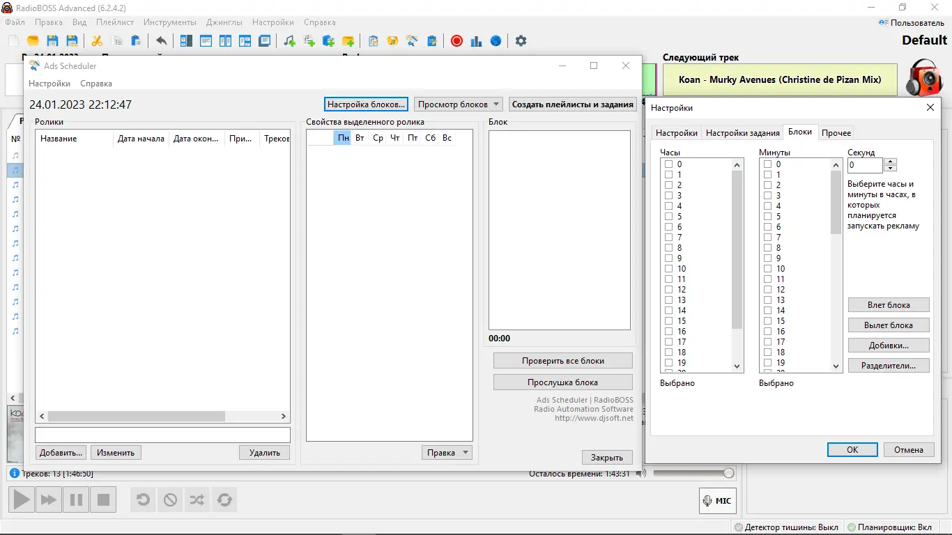 - Полный функционал доступен только в версии RadioBOSS advanced