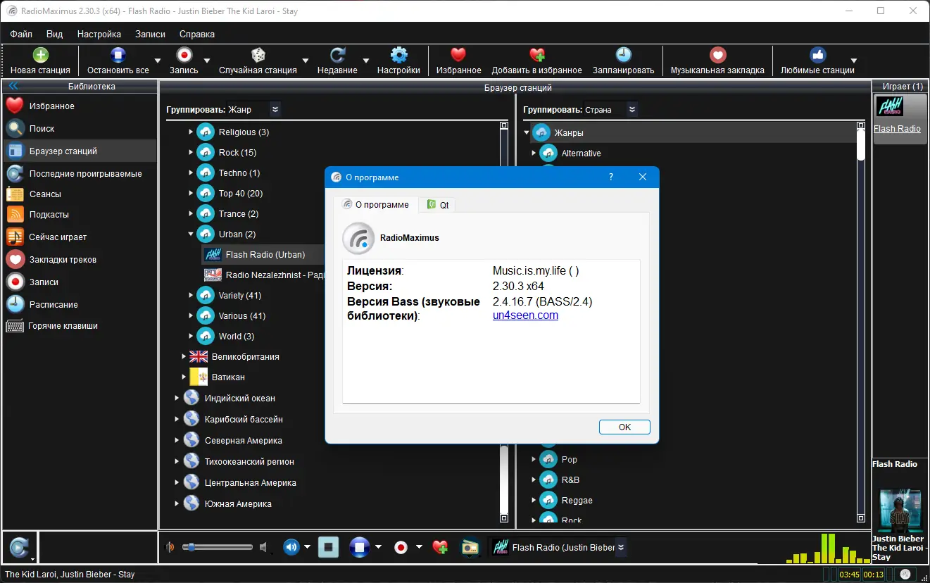 RadioMaximus — это многофункциональный проигрыватель, предназначенный для прослушивания и записи эфира радиостанций со всего мира. Программа поддерживает одновременную работу с несколькими потоками, автоматическое распознавание треков и сохранение аудио в популярных форматах. Интерфейс интуитивно понятен, а встроенные инструменты упрощают навигацию и настройку.