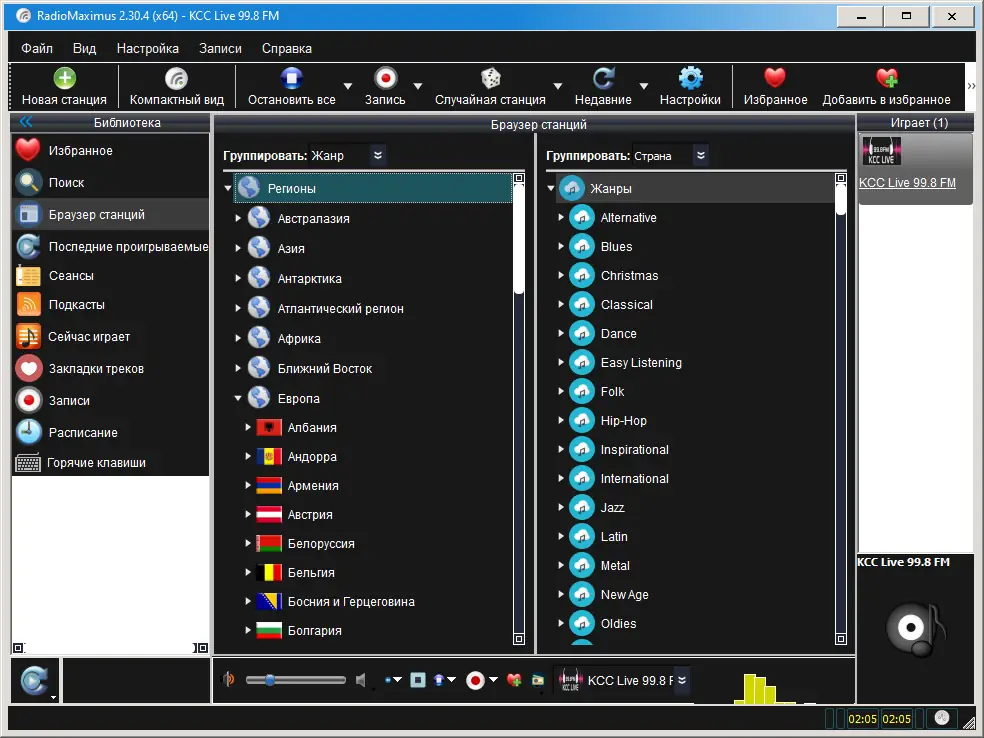 RadioMaximus — удобное приложение для прослушивания и записи потокового аудио с радиостанций со всего мира. Программа поддерживает одновременную работу с несколькими каналами и позволяет сохранять аудиоданные в популярных форматах, включая MP3, AAC, OGG, WMA и RAW. Интерфейс интуитивно понятен, а функционал охватывает как базовые, так и продвинутые возможности для меломанов и коллекционеров музыки.
