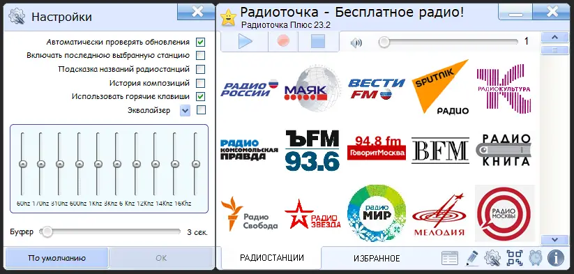 - Поддержка записи радиоэфира для последующего прослушивания