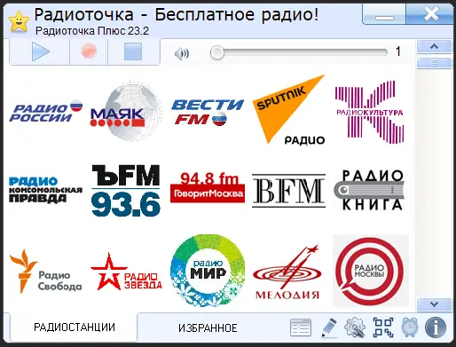 Радиоточка Плюс — это удобное приложение для прослушивания и записи эфира онлайн-радиостанций на компьютере. Программа предлагает доступ к обширной коллекции радиоканалов различных жанров и направлений без назойливой рекламы и дополнительных модулей. Интерфейс отличается простотой, а встроенный определитель исполнителя помогает узнать название трека в режиме реального времени.