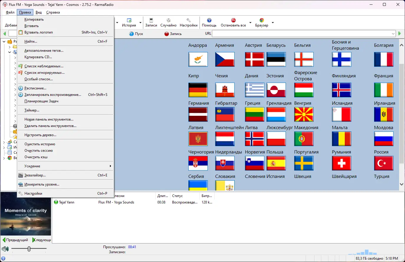 RarmaRadio предоставляет доступ к обширной базе интернет-радиостанций, которые систематизированы по категориям для удобного поиска и навигации. Пользователь может быстро находить станции по интересующему жанру, выбирать высокий битрейт для качественного звука или фильтровать вещание по географическому расположению. Интерфейс программы интуитивно понятен, обеспечивая быстрый доступ к основным функциям, включая трансляцию, запись и управление плейлистами.