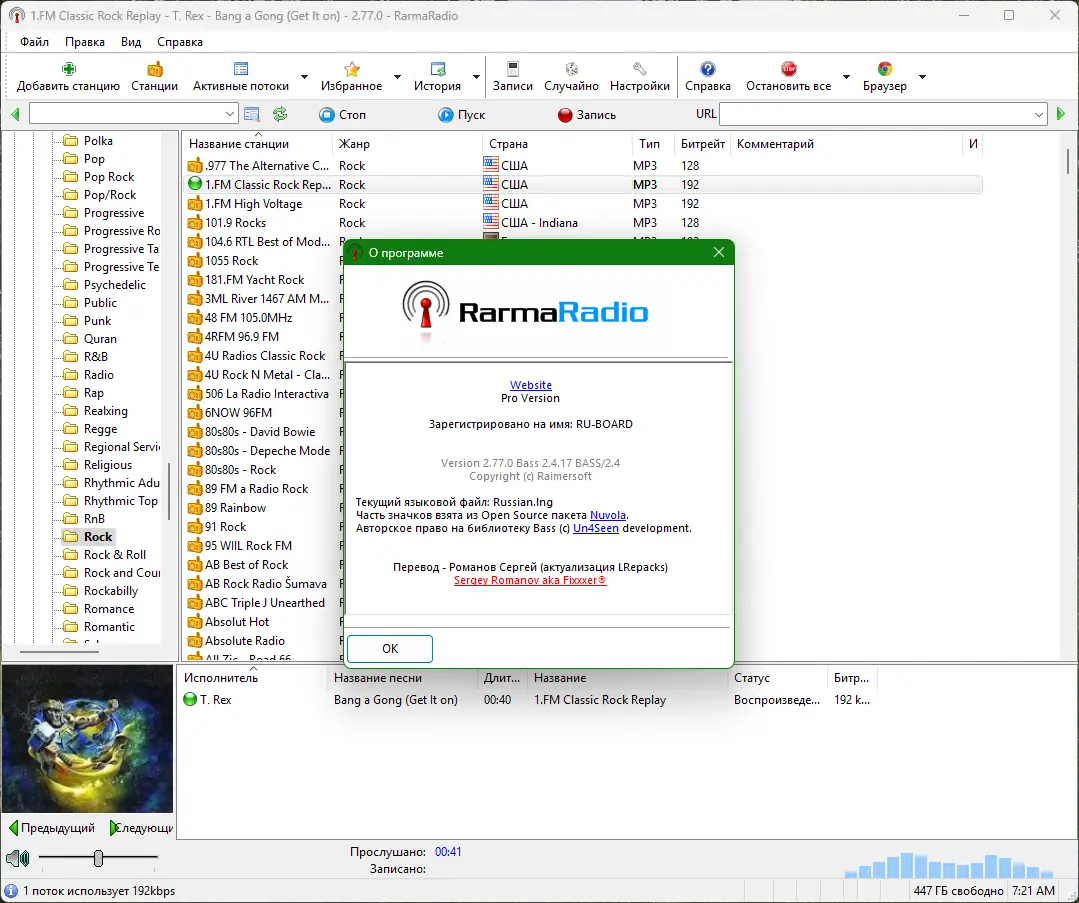 RarmaRadio — универсальное приложение для прослушивания и записи эфиров интернет-радиостанций с возможностью автоматического сохранения треков с тегами и обложками. Программа предлагает доступ к обширной базе радиостанций, сгруппированных по жанрам, регионам, битрейту и сетям, поддерживает интеграцию с Winamp, работу по расписанию и фоновую запись нескольких потоков одновременно. Подходит как для повседневного использования, так и для сбора музыкальных коллекций из эфирного вещания.