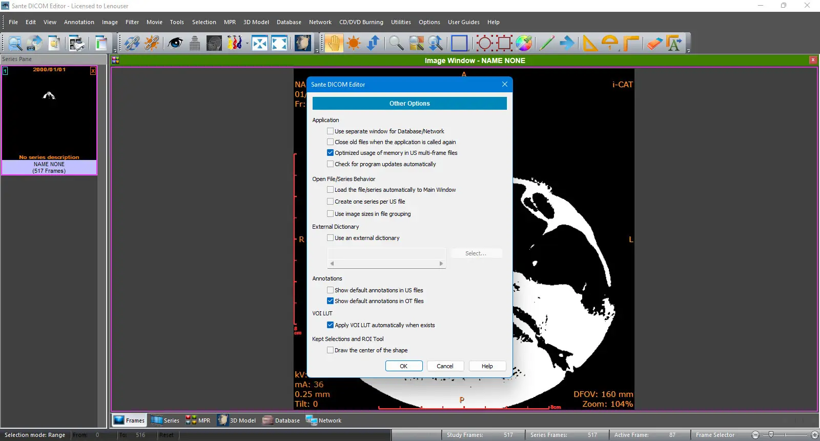 Использование Sante DICOM Editor не требует глубоких технических знаний благодаря продуманному интерфейсу и поддержке родного стиля Windows. После установки программа позволяет импортировать файлы DICOM напрямую с устройств хранения, загружать данные через сеть или импортировать из других DICOM-просмотрщиков с помощью инструмента миграции. Пользователь может просматривать исследования в 2D-режиме, выполнять многоплоскостную реконструкцию, включая криволинейную MPR, а также строить 3D-модели на основе сканирований. Редактирование метаданных осуществляется через встроенный редактор заголовков, где можно изменять, добавлять или удалять атрибуты как в одиночных, так и в групповых файлах. Для передачи данных в сети используются стандартные DICOM-сервисы: C-MOVE, C-STORE, C-FIND и другие. Анонимизация выполняется по шаблонам, что позволяет гибко настраивать процесс деидентификации.