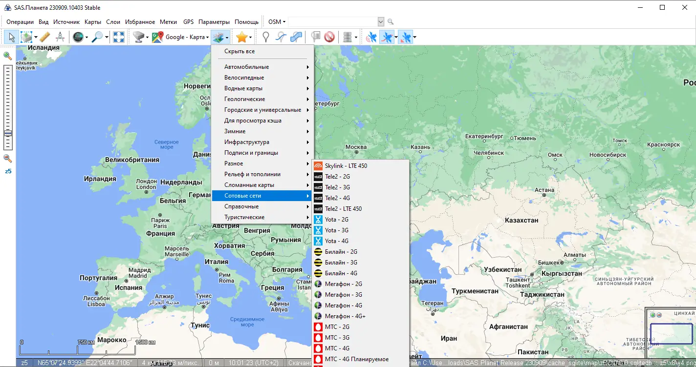 SAS.Планета — это мощное программное решение для работы с картографическими данными, объединяющее в себе функции просмотра, загрузки и обработки спутниковых снимков и цифровых карт. Приложение интегрируется с такими сервисами, как Google Maps, Яндекс.Карты, Bing Maps, OpenStreetMap, DigitalGlobe и другими, позволяя собирать информацию из различных источников в единой среде. Полученные данные сохраняются в локальном кэше, что даёт возможность использовать их без активного интернет-подключения.