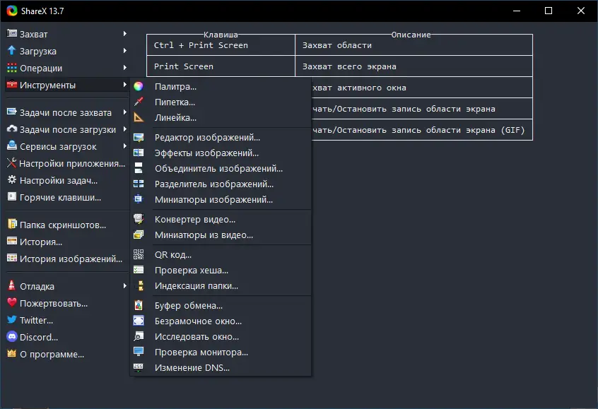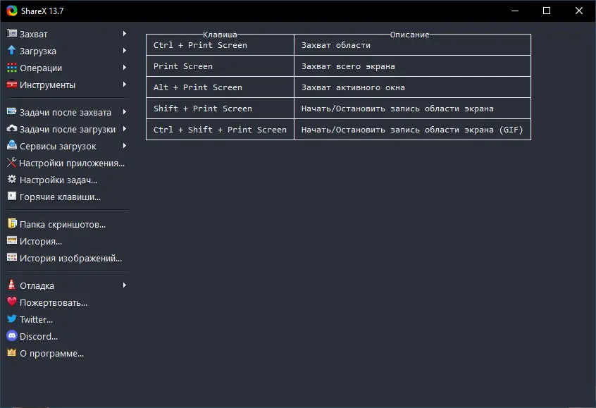 ShareX — это бесплатная программа с открытым исходным кодом, распространяемая под лицензией GPLv3, которая предоставляет пользователю полный контроль над процессом захвата и обработки контента. Приложение позволяет выполнять скриншот активного окна, полноэкранного режима, выбранной области или даже отдельного монитора в многомониторной конфигурации. Особенностью является поддержка захвата прозрачных окон и отложенного старта, что делает процесс более точным и удобным.