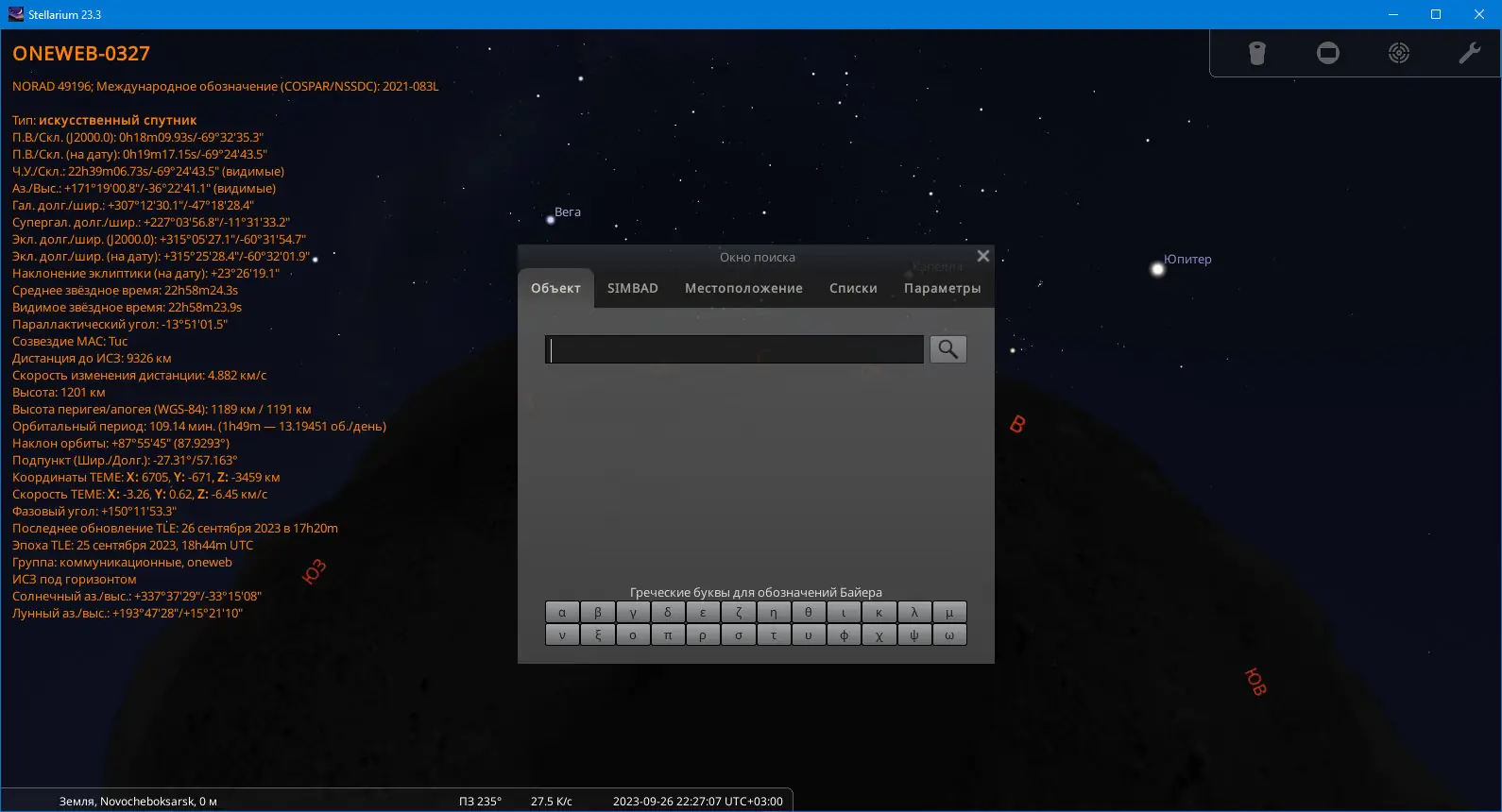 - Доступны режимы симуляции затмений, вспышек Иридиумов, появления сверхновых и движения комет.