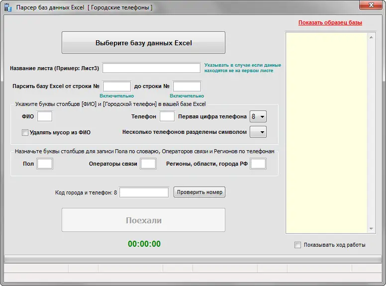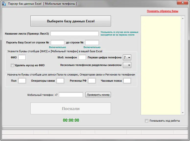 Работа с SuperDataBase интуитивно понятна даже пользователю без технического бэкграунда. Для начала необходимо загрузить файл в формате Excel, указав столбцы, содержащие ФИО и номера телефонов. Далее выбираются нужные режимы обработки: форматирование, конвертация, определение пола или региона. После запуска процесса программа обрабатывает данные в течение нескольких секунд и выгружает результат в новый файл, готовый к использованию. Интерфейс поддерживает русский язык, а все настройки сохраняются для повторного использования.