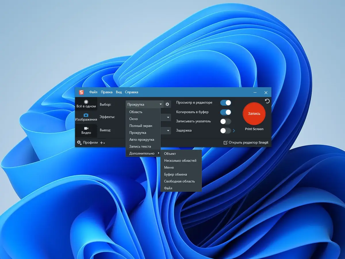 Snagit позволяет захватывать изображения без отображения курсора, что особенно важно при создании чистых скриншотов для презентаций и документации.
