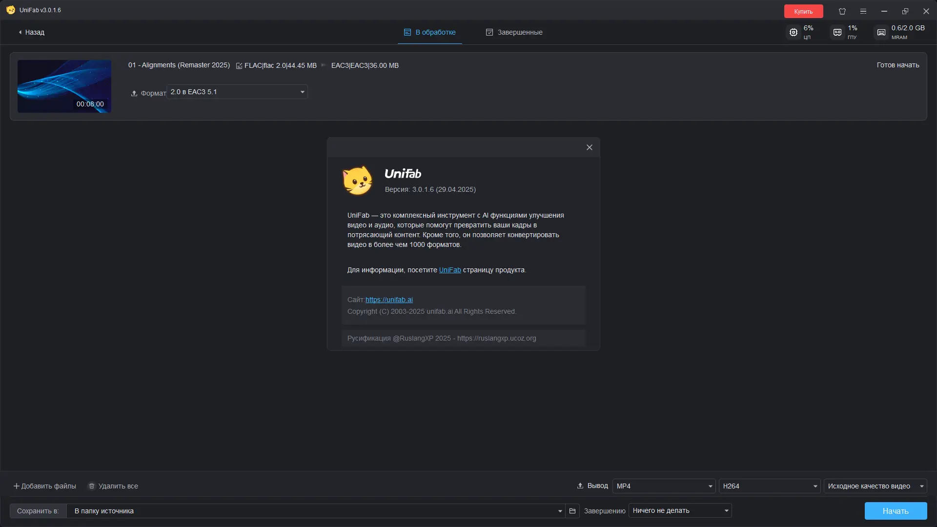 UniFab — это универсальный медиа-инструмент от DVDFab, предназначенный для конвертации, улучшения и редактирования видео и аудио с применением технологий искусственного интеллекта. Программа поддерживает более 1000 форматов, автоматически повышает качество изображения до HDR10 и Dolby Vision, а также улучшает звук до многоканального EAC3 5.1 и DTS 7.1. Благодаря модульной архитектуре, включающей Video AI и Audio AI, решение подходит как для домашнего использования, так и для профессиональной обработки контента.