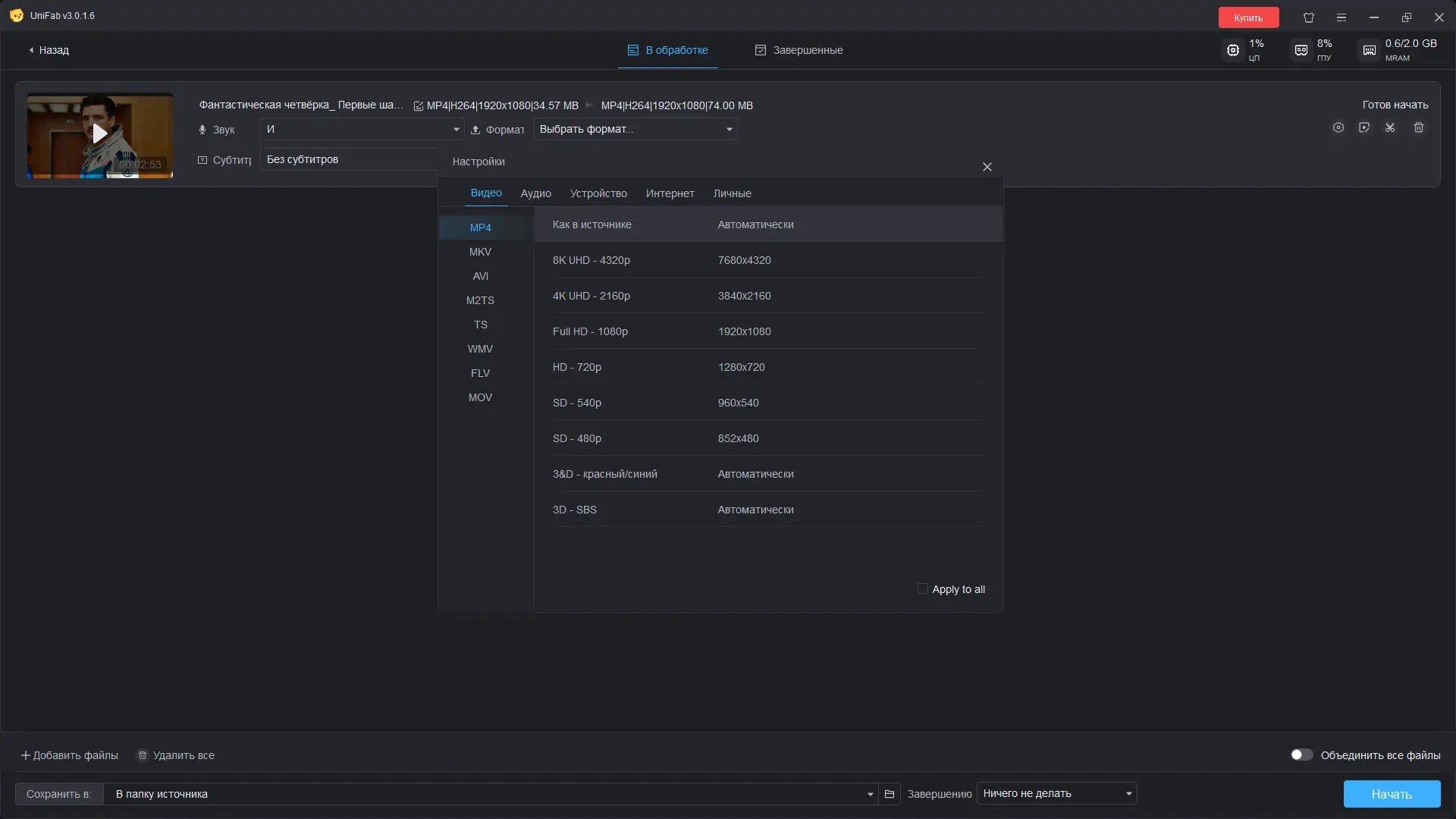 UniFab предлагает широкий функционал, сочетающий в себе возможности конвертера, редактора и AI-усилителя качества. Программа поддерживает аппаратное ускорение через CUDA, AMD и Intel Quick Sync, что значительно сокращает время обработки. Модули с искусственным интеллектом, такие как HDR Upscaler AI и Smoother AI, позволяют добиться высокого уровня детализации и плавности изображения. В то же время, использование некоторых функций ограничено лицензионными правилами, а полная работа AI-компонентов возможна только в Windows 10 и 11 x64.