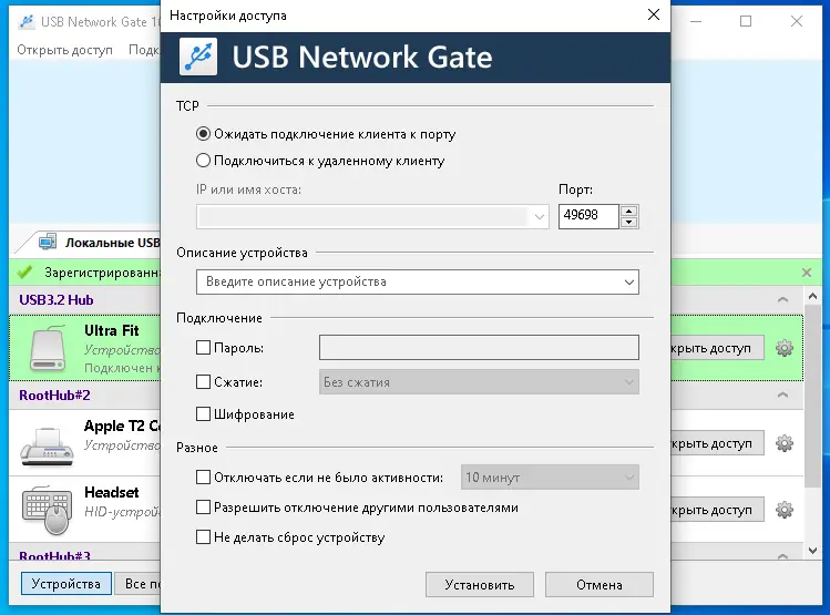 Использование приложения начинается с установки на компьютер, к которому подключено USB-устройство, и на машину, с которой будет осуществляться доступ. На серверной стороне устройство регистрируется в программе и становится доступным в сети. На клиентской стороне достаточно выбрать нужное устройство из списка и подключиться к нему. Процесс не требует сложных настроек и интегрируется в систему без перезагрузки.