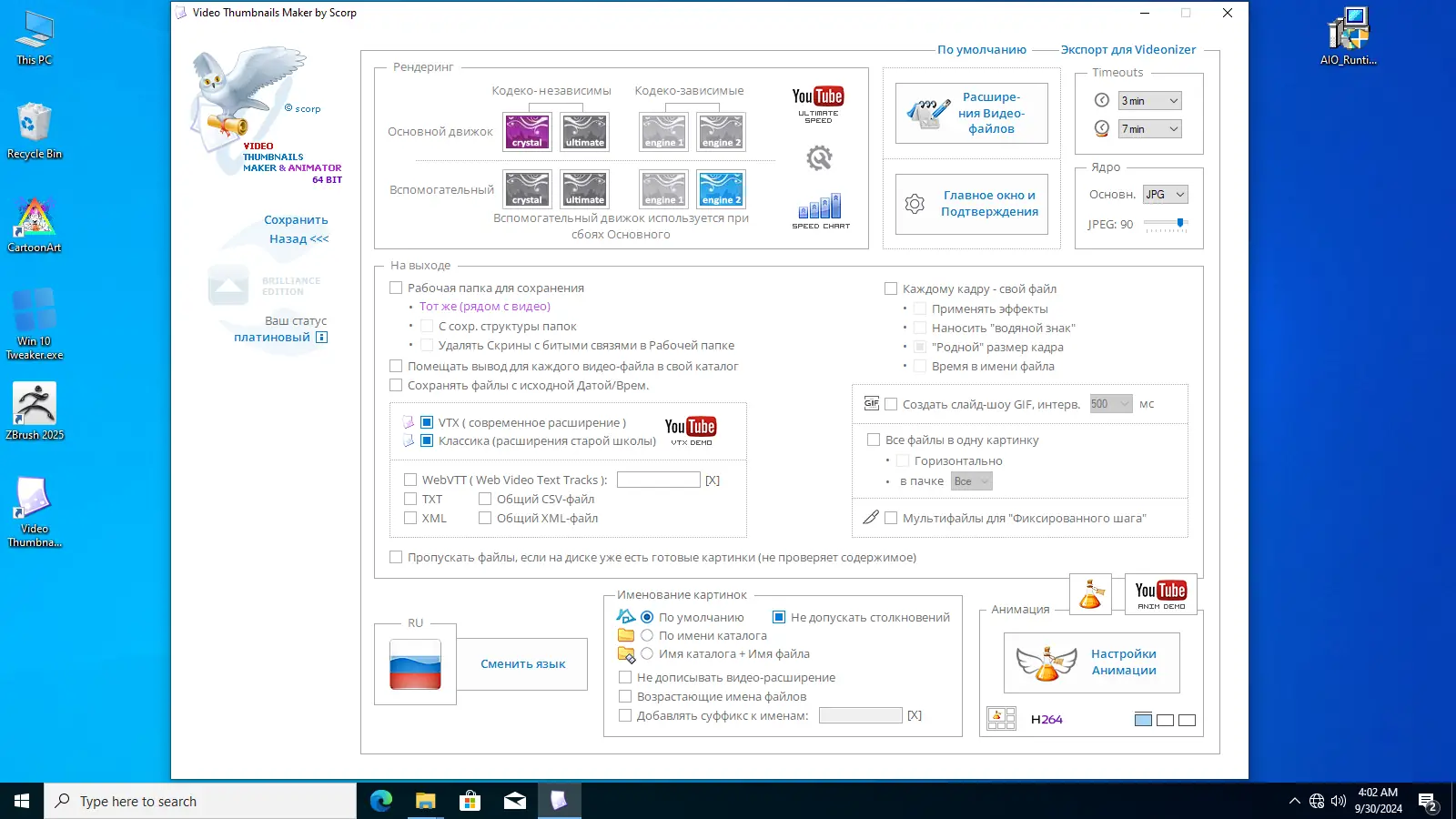 - Экспорт данных о видео в CSV и XML, а также сохранение пользовательских пресетов.
