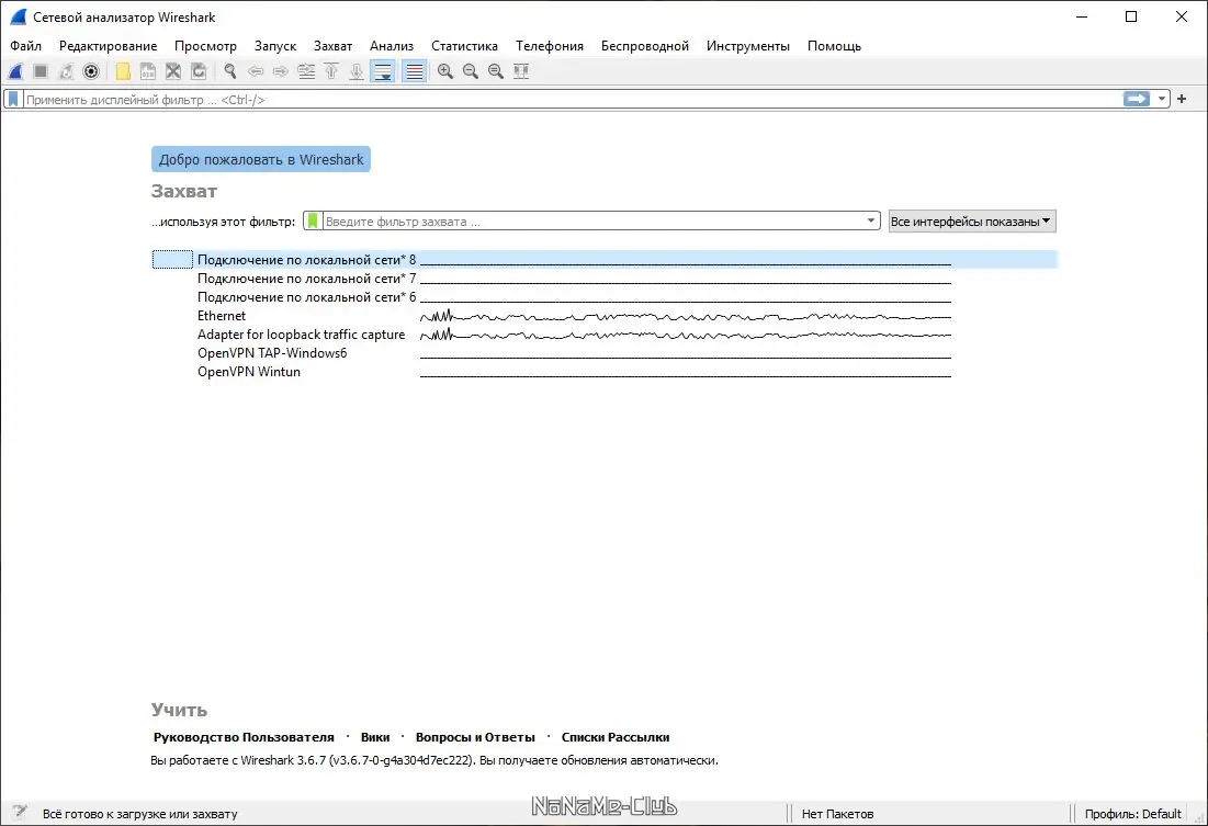 - Поддерживается анализ трафика не только в реальном времени, но и в загруженных ранее файлах, в том числе в форматах, совместимых с tcpdump и другими снифферами.
