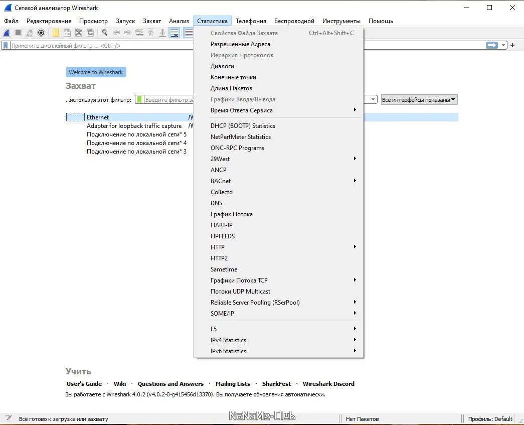 - Глубокий разбор структуры пакетов с отображением всех уровней протоколов.