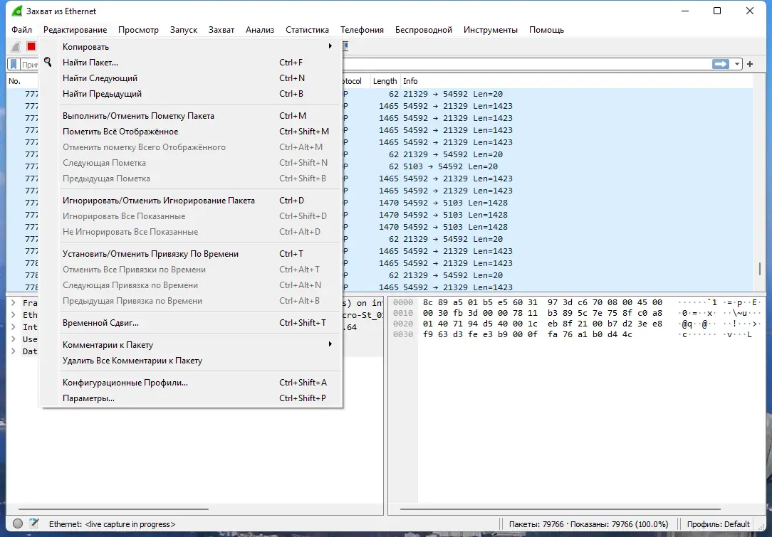 - Возможность сохранения сессий захвата и последующего анализа в офлайне.