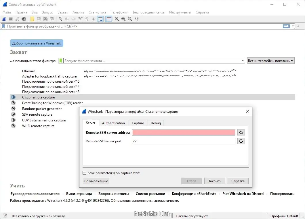 - Поддержка анализа трафика в реальном времени с возможностью сохранения сессий для последующего изучения.