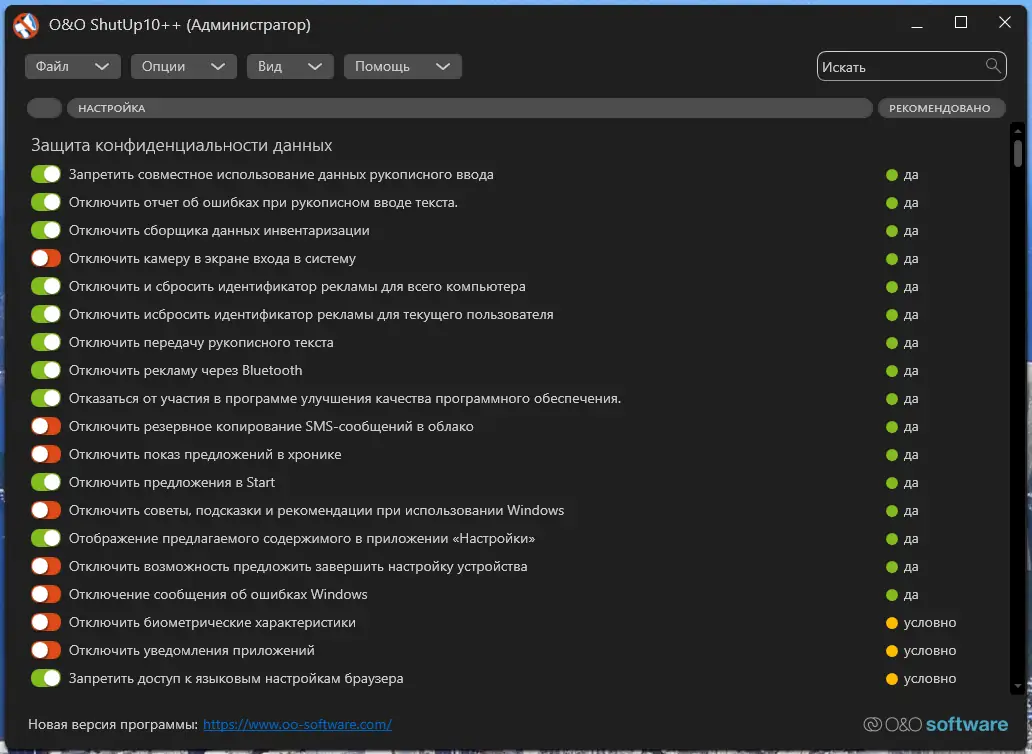 O&O ShutUp10 сочетает в себе простоту использования и эффективность в защите персональных данных. Программа не замедляет работу системы, не устанавливает дополнительные компоненты и не требует прав администратора для всех функций. При этом она даёт доступ к настройкам, которые в стандартном интерфейсе Windows скрыты или распределены по разным меню. Это позволяет быстро и безопасно оптимизировать систему под индивидуальные предпочтения. Несмотря на отсутствие регулярных обновлений, разработчик оперативно реагирует на изменения в новых сборках Windows.