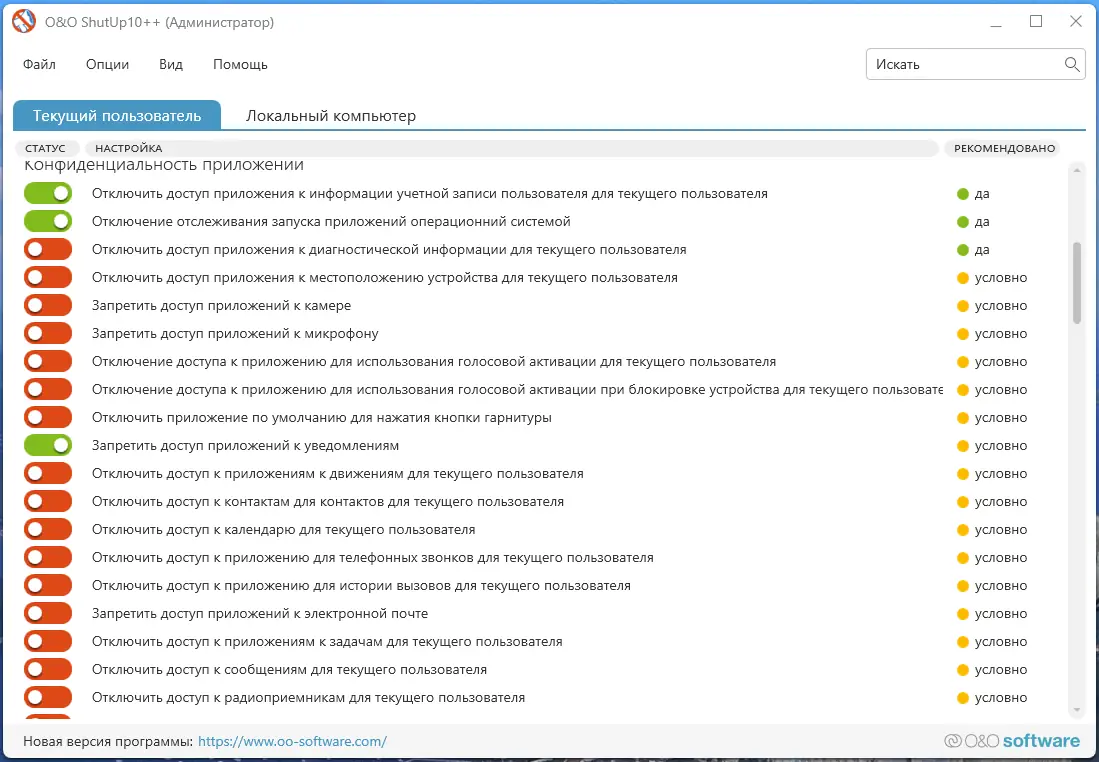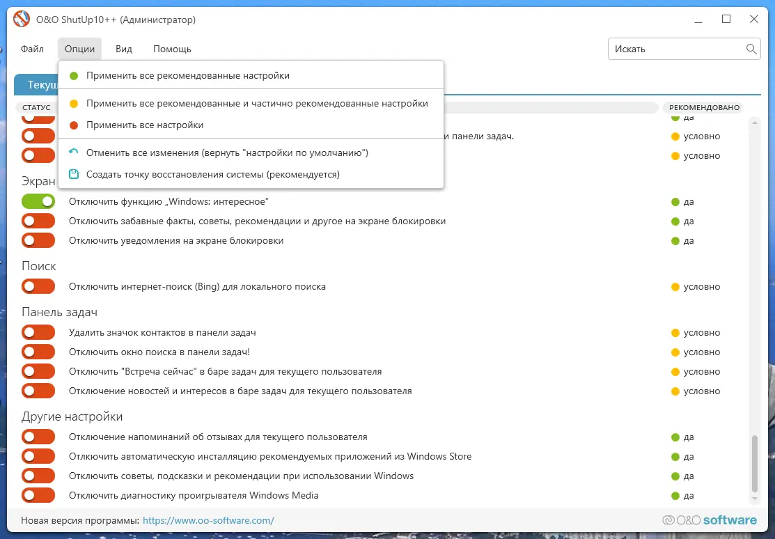 Как пользоваться O&O ShutUp10