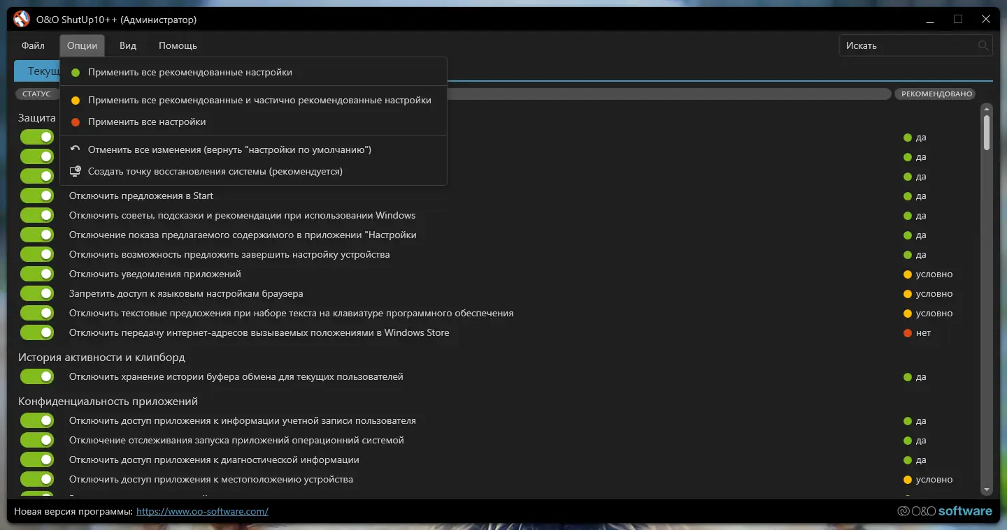 Как пользоваться O&O ShutUp10