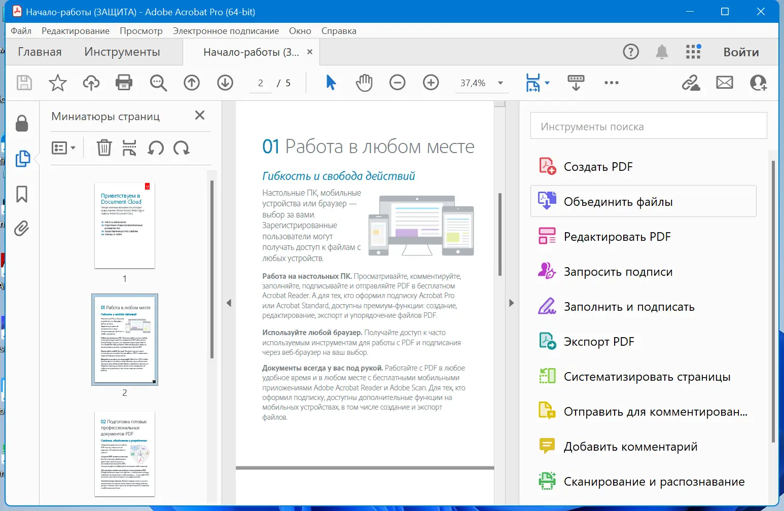 Adobe Acrobat — это универсальное решение для работы с файлами PDF, сочетающее в себе мощные инструменты редактирования, конвертации и защиты документов. Программа позволяет создавать, редактировать и подписывать PDF-файлы на любом устройстве, обеспечивая полную синхронизацию через облачные сервисы. Благодаря интеграции с мобильными приложениями и поддержке сенсорного ввода, работа с документами становится максимально гибкой и удобной.