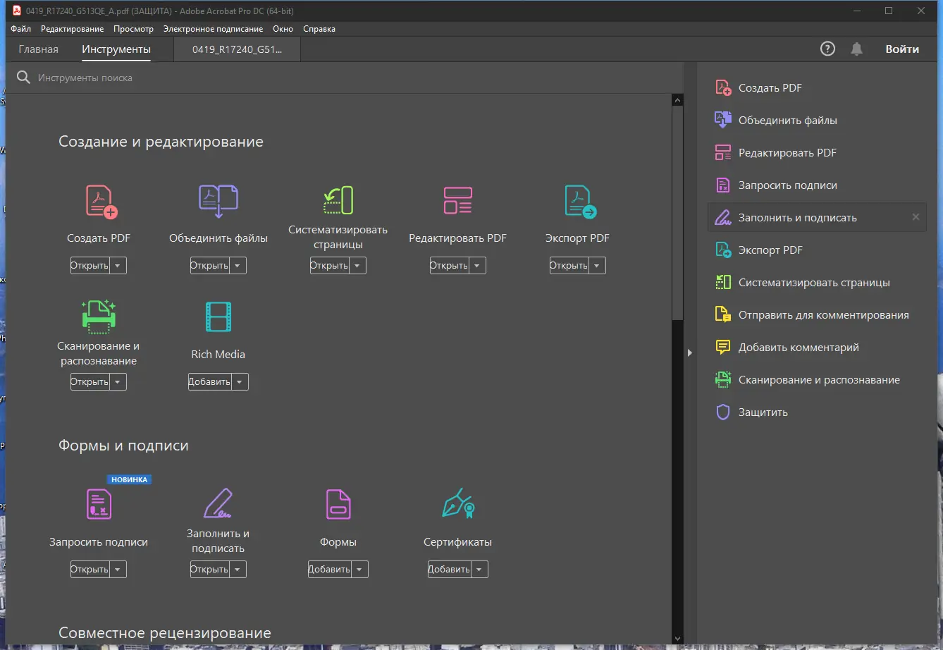 Использование Adobe Acrobat начинается с открытия или создания PDF-файла. Через главное меню можно объединить несколько документов, отсканировать бумагу с помощью подключенного сканера или камеры смартфона, а также конвертировать файлы из других форматов. Для редактирования текста или изображений в PDF достаточно выбрать соответствующий инструмент — изменения применяются мгновенно. Электронные формы настраиваются через конструктор, где можно добавлять поля ввода, переключатели и кнопки подписи. Отправка на подписание осуществляется через встроенные сервисы, с возможностью отслеживания статуса документа.