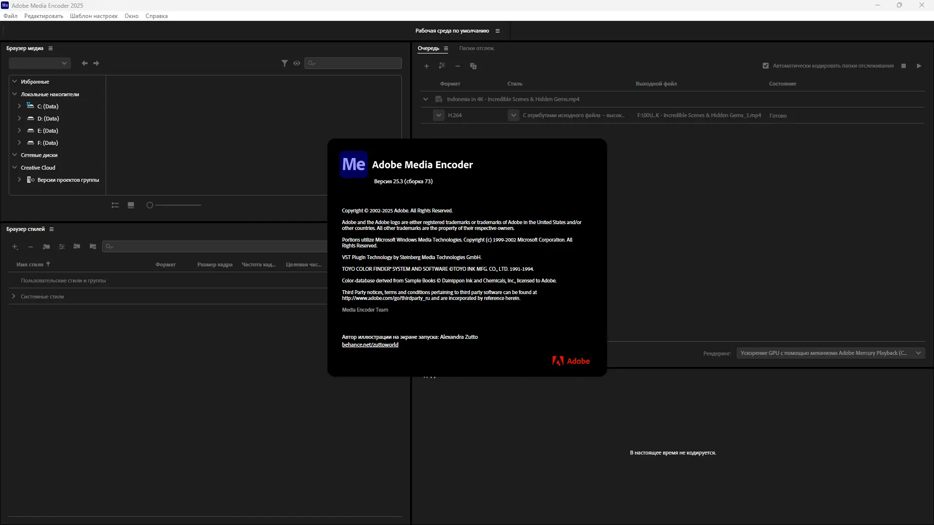 Adobe Media Encoder — профессиональное приложение для кодирования и конвертации аудио- и видеофайлов в широкий спектр форматов, оптимизированных под различные устройства и платформы. Программа интегрируется с приложениями Creative Cloud, обеспечивая бесшовную передачу проектов из Premiere Pro, After Effects и других программ. Поддержка современных кодеков, настройка цветопередачи и возможность автоматизации процессов делают инструмент незаменимым в мультимедийном производстве.
