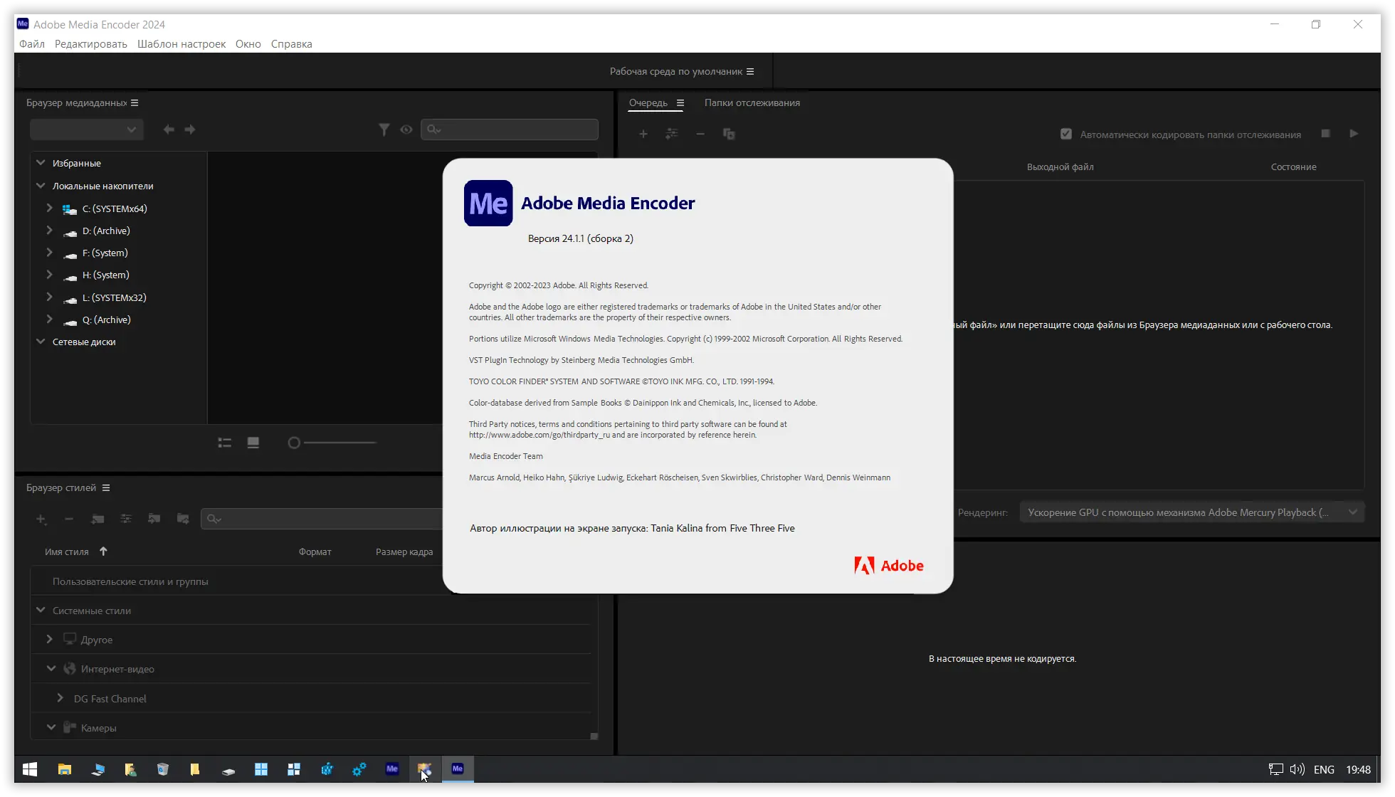 Adobe Media Encoder представляет собой мощное приложение для кодирования и преобразования цифрового контента, ориентированное на специалистов в области видеопроизводства. Программа поддерживает широкий диапазон форматов, включая H.264, HEVC, MPEG-2, ProRes и DNxHD, что позволяет экспортировать материалы для использования на телевидении, в интернете, на мобильных устройствах и в кинотеатрах. С её помощью можно создавать прокси-файлы для ускорения монтажа, настраивать очередь задач и автоматизировать публикацию на YouTube, Vimeo и другие платформы. Особую ценность представляет функция Time Tuner, позволяющая корректировать длительность ролика, применять цветовые LUT-таблицы и выравнивать уровень громкости без перезапуска исходных проектов.