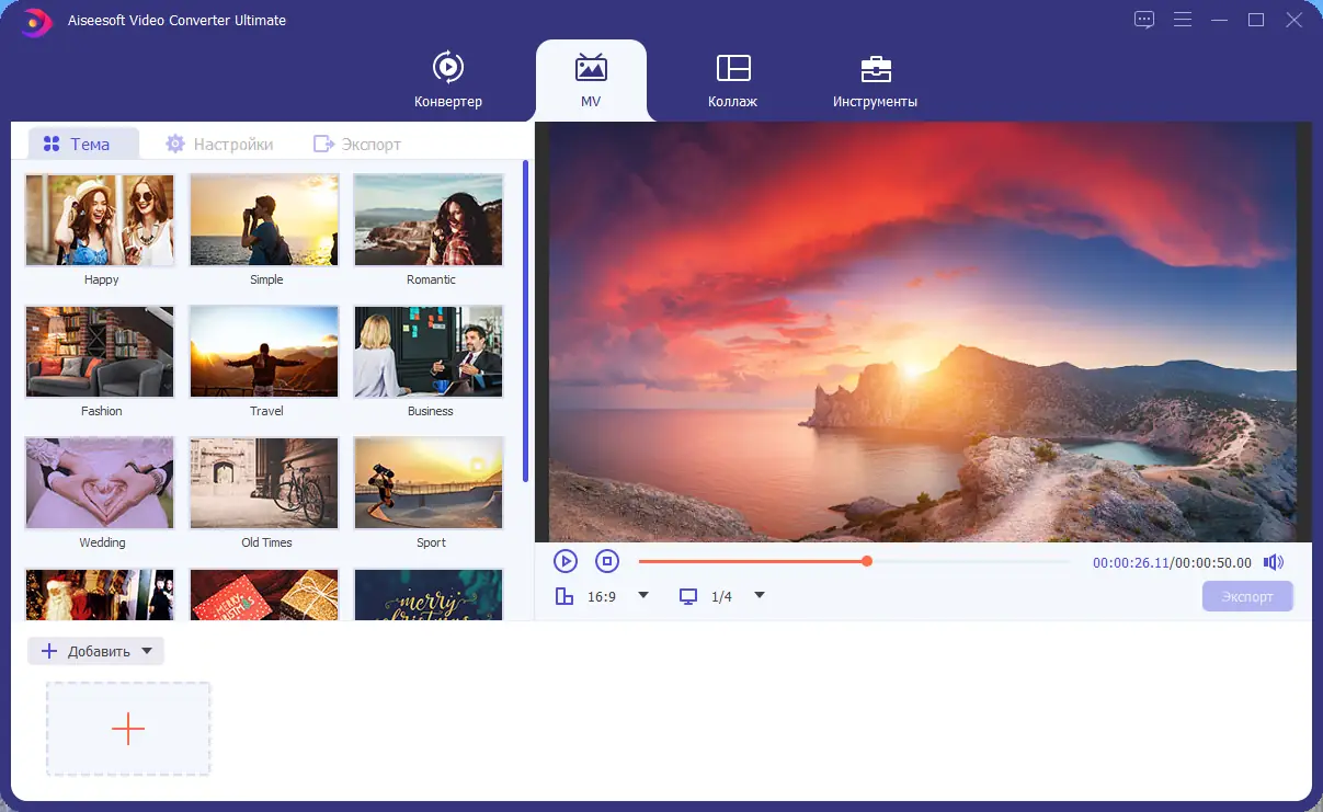 Aiseesoft Video Converter Ultimate представляет собой многофункциональный инструмент, предназначенный для преобразования видео в различные форматы без потери качества. Программа поддерживает обработку файлов с разрешением до 8K, включая кодеки H.265/HEVC и VP9, что делает её актуальной для современных стандартов видеопроизводства. Она способна конвертировать не только цифровые файлы, но и физические носители — DVD и Blu-Ray — в популярные контейнеры, такие как MP4, MKV, AVI и другие.