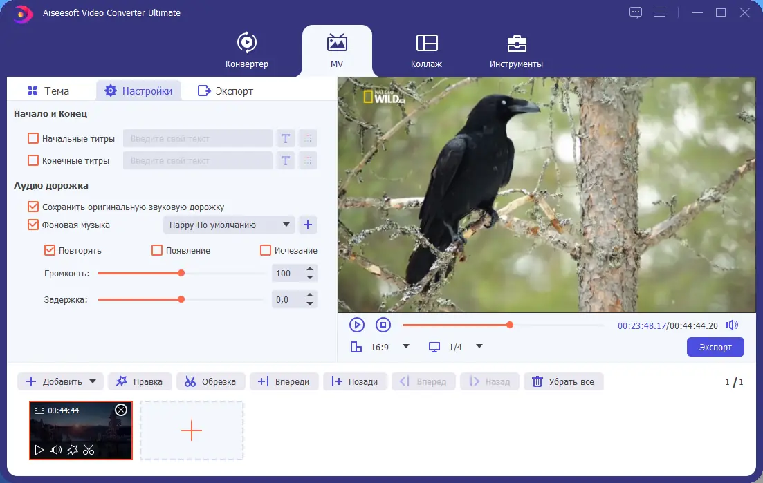 Интерфейс Aiseesoft Video Converter Ultimate интуитивно понятен и не требует глубоких технических знаний. Для начала работы достаточно добавить файл в программу, выбрать нужный формат вывода и настроить параметры при необходимости. Встроенный видеоредактор позволяет обрезать фрагменты, поворачивать изображение, корректировать цвет и насыщенность. Перед конвертацией доступен режим предпросмотра, что помогает оценить результат до завершения процесса.