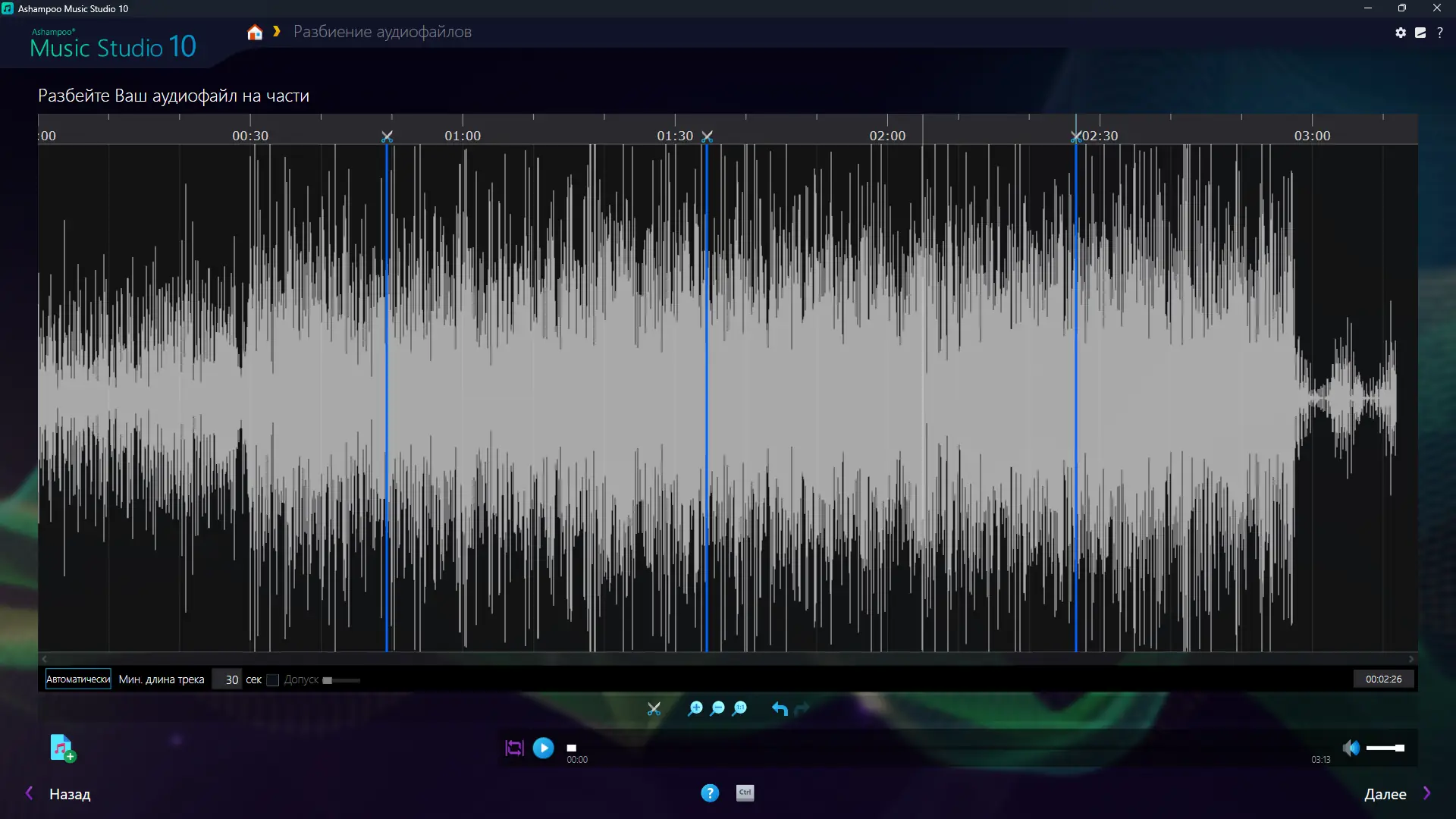- Поддержка зацикливания при прослушивании позволяет точно настраивать переходы между фрагментами аудиодорожек.