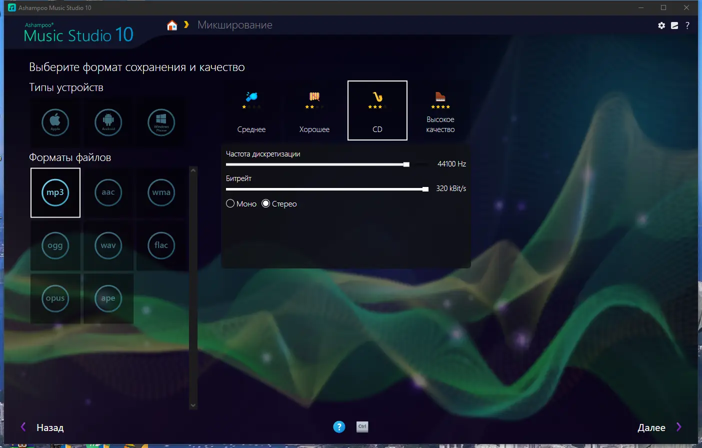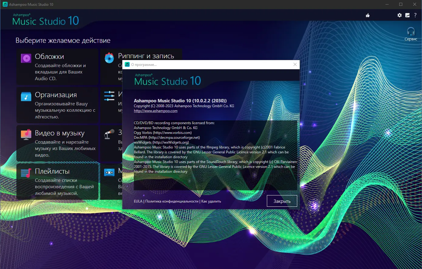 Ashampoo Music Studio 10 — это многофункциональное приложение, созданное для комплексной работы с аудиоданными. Программа поддерживает широкий спектр форматов, включая MP3, WAV, FLAC, WMA и другие, обеспечивая высокую скорость конвертации без потери качества. Её интерфейс интуитивно понятен, а встроенные инструменты позволяют легко нарезать, объединять, редактировать и систематизировать музыкальные файлы. Благодаря модульной структуре, пользователь может переключаться между записью, редактированием, копированием дисков и созданием плейлистов в один клик.
