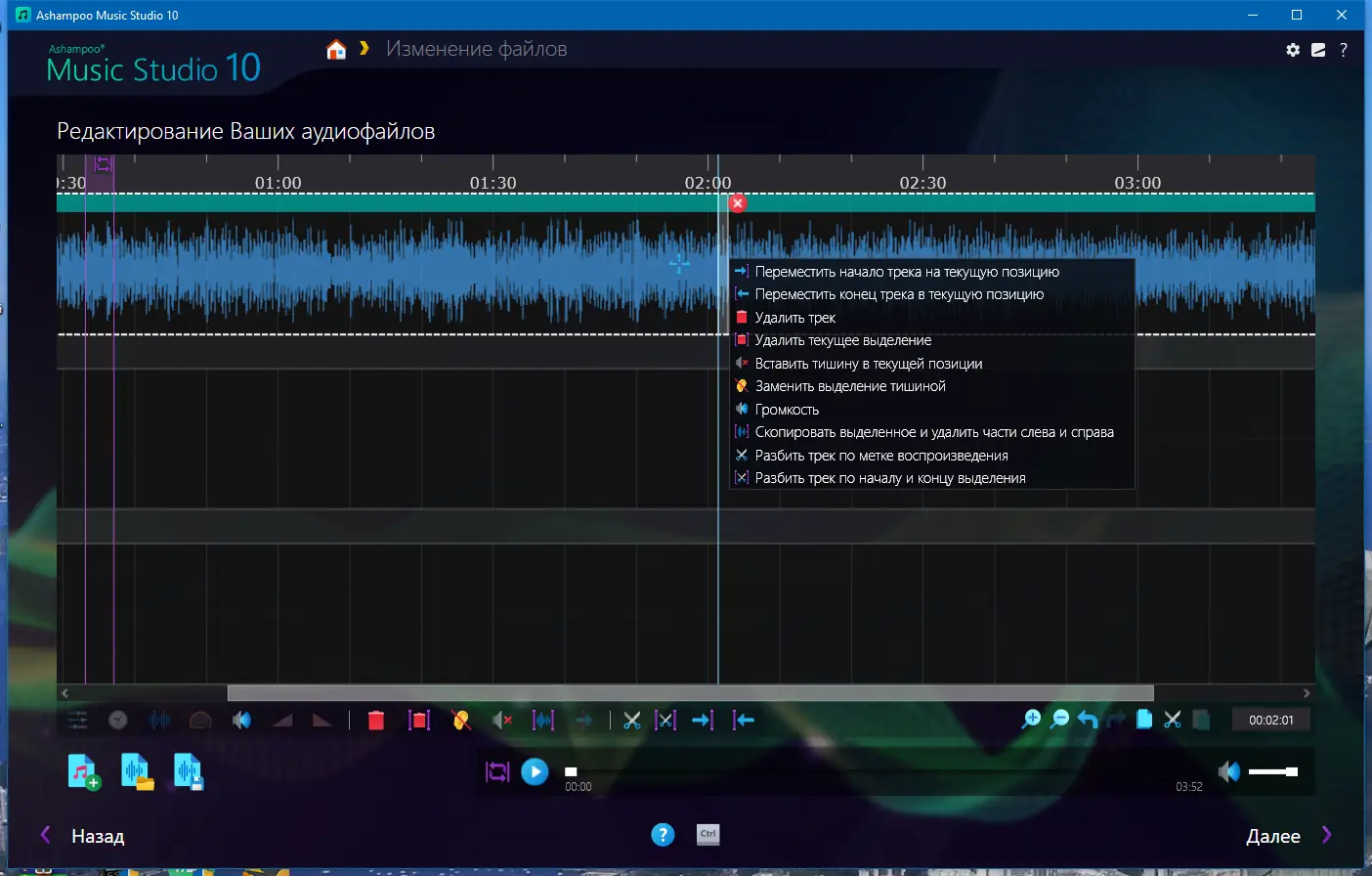 - Редактирование аудиодорожек с точностью до миллисекунды