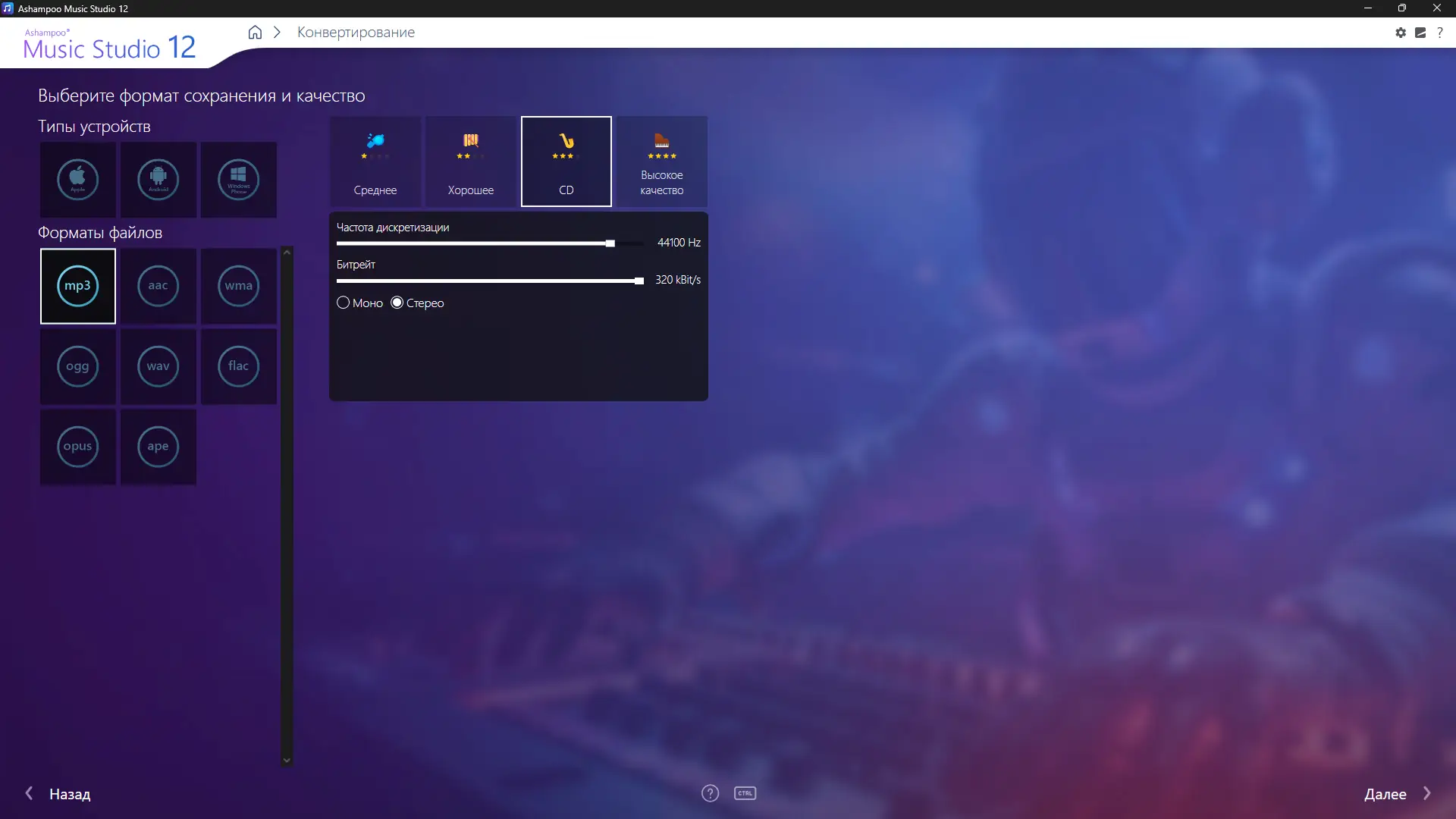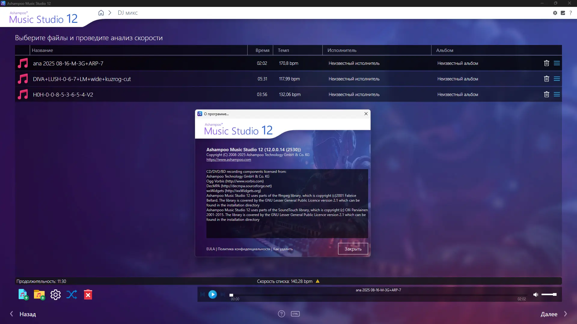 Ashampoo Music Studio 12 — многофункциональный аудиоредактор и конвертер, объединяющий инструменты для записи, редактирования, конвертации и организации музыкальных файлов. Программа подходит как для новичков, так и для продвинутых пользователей, обеспечивая высокую точность распознавания треков, автоматизацию рутинных операций и удобное управление медиаколлекцией. С ней можно легко копировать диски, извлекать аудио из потоковых сервисов и создавать плейлисты для любых устройств.