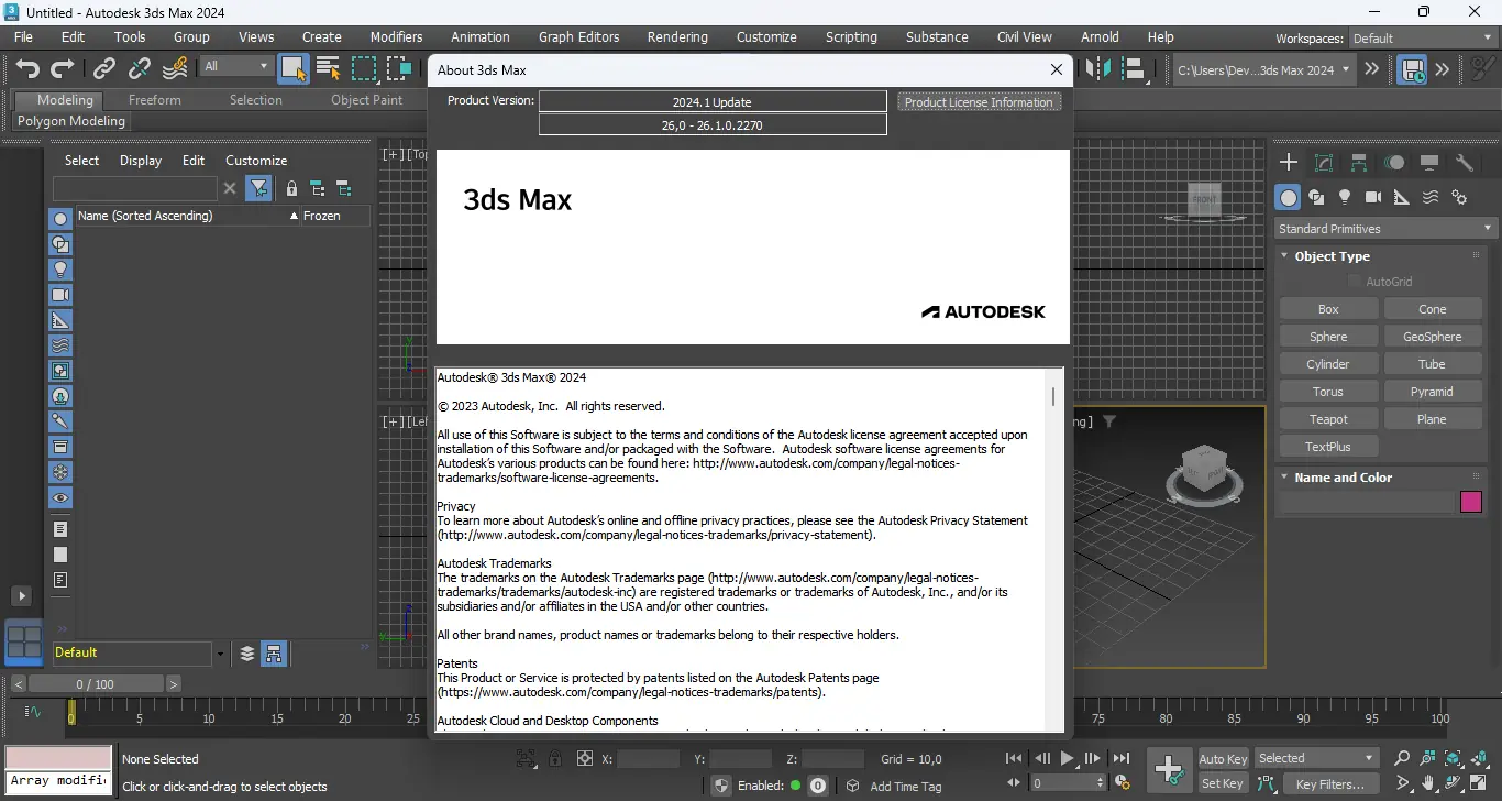 Autodesk 3ds Max — профессиональное программное обеспечение для 3D-моделирования, анимации и визуализации, используемое в архитектуре, кинематографе, геймдеве и промышленном дизайне. С его помощью создаются детализированные сцены, реалистичные персонажи и сложные эффекты. Программа поддерживает расширенные инструменты рендеринга, моделирования и текстурирования, обеспечивая высокую производительность и точность.