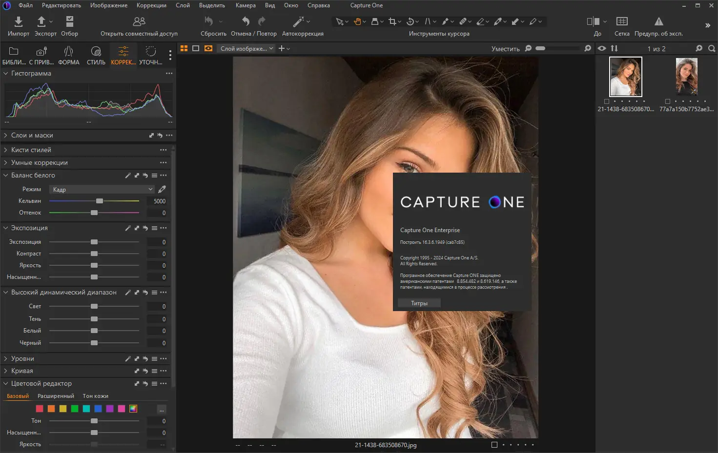 Capture One — профессиональный RAW-конвертер, предназначенный для обработки фотографий с поддержкой камер ведущих брендов. Программа обеспечивает высокоточную цветопередачу, гибкие инструменты коррекции и оптимизацию изображений без необходимости использовать сторонние редакторы. Идеальное решение для фотографов, стремящихся к максимальному контролю над процессом постобработки.