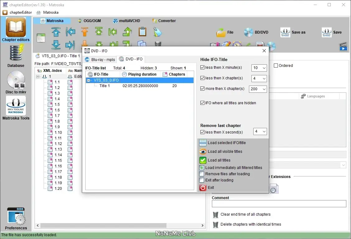 Для работы с Matroska-файлами требуется предварительная установка MKVToolNix