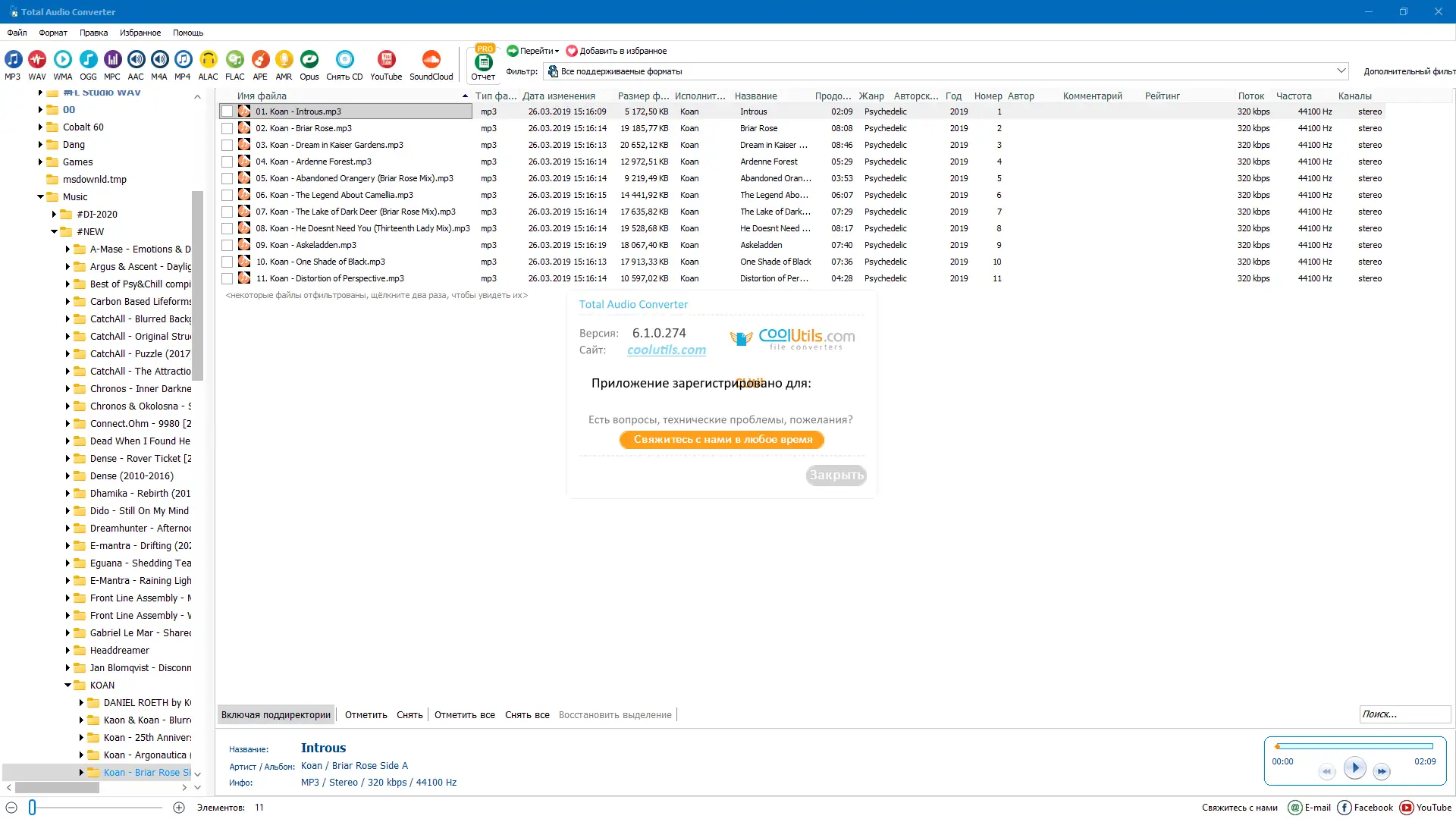 CoolUtils Total Audio Converter представляет собой мощное приложение, предназначенное для преобразования аудиофайлов в различные форматы без потери качества. Программа поддерживает широкий спектр аудиокодеков, включая MP3, WAV, FLAC, WMA, OGG, AAC, APE и многие другие, что позволяет использовать её как для бытовых, так и для профессиональных задач. Благодаря прямому конвертированию, процесс выполняется быстрее, поскольку не требует создания временных WAV-файлов.