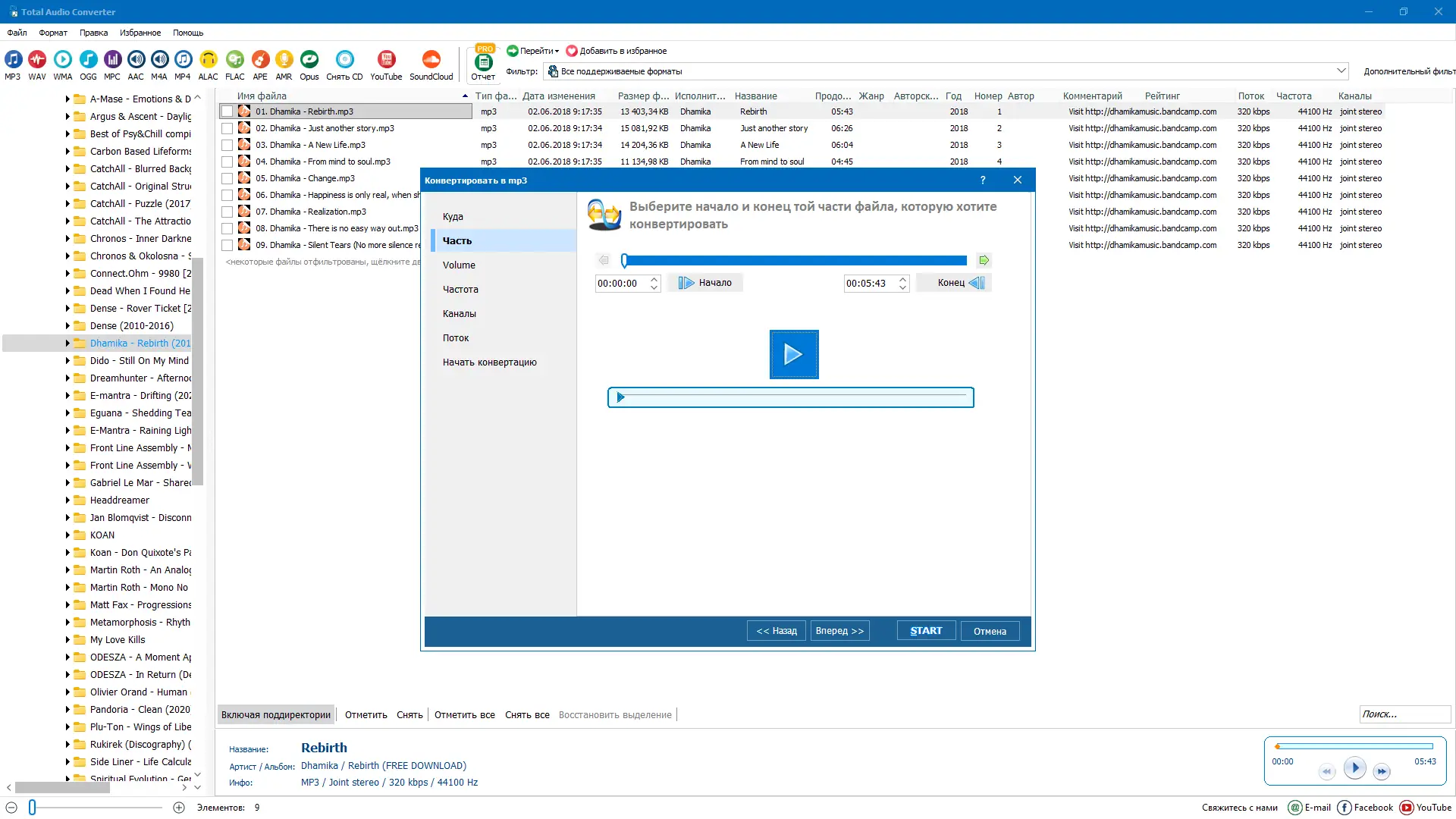 - Встроенный аудиоплеер для прослушивания результата сразу после конвертации