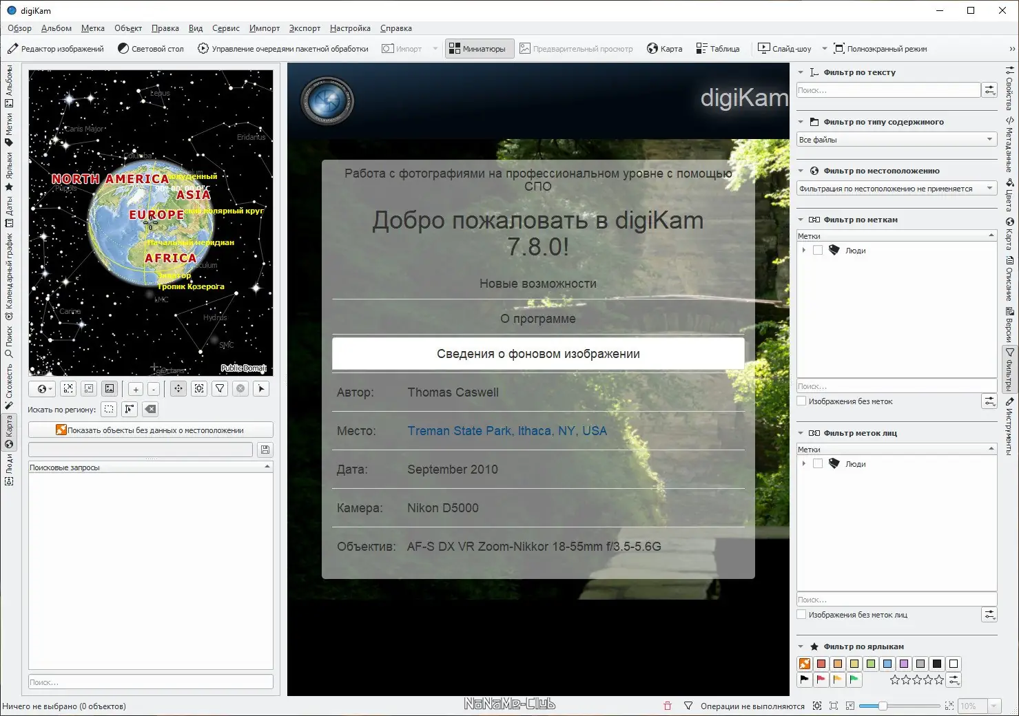 digiKam — это мощный photo manager с открытым исходным кодом, предназначенный для эффективной организации, просмотра и обработки цифровых фотографий. Программа поддерживает широкий спектр форматов, включая RAW, и предлагает инструменты для автоматической каталогизации, тегирования, поиска по метаданным и визуализации снимков на карте. Работает на платформах linux и windows, доступна для скачивания на русском языке.