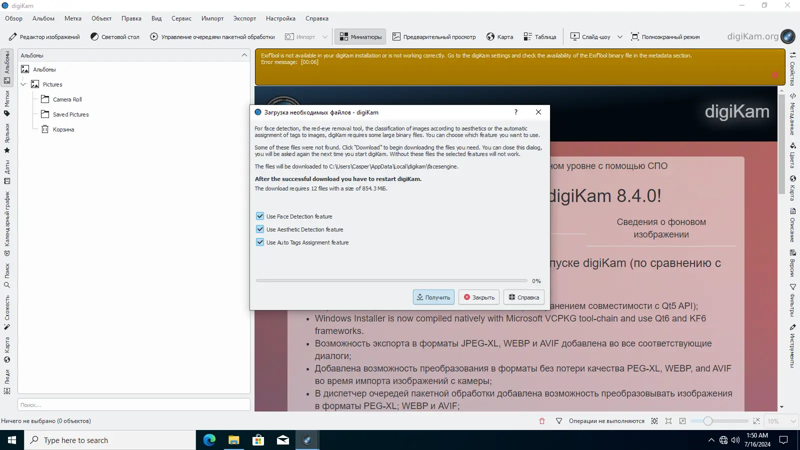DigiKam — это мощный инструмент для управления цифровыми фотографиями, созданный с учётом потребностей как любителей, так и профессионалов. Программа работает на базе технологий C++ и графического интерфейса Qt, обеспечивая стабильность и высокую производительность. Поддержка библиотек Exiv2 и LibRaw позволяет корректно обрабатывать метаданные и RAW-изображения, что особенно важно при работе с файлами профессиональных фотокамер. При первом запуске пользователь проходит мастер настройки, где указывает каталоги для хранения фото и служебных данных программы, что упрощает начало работы.