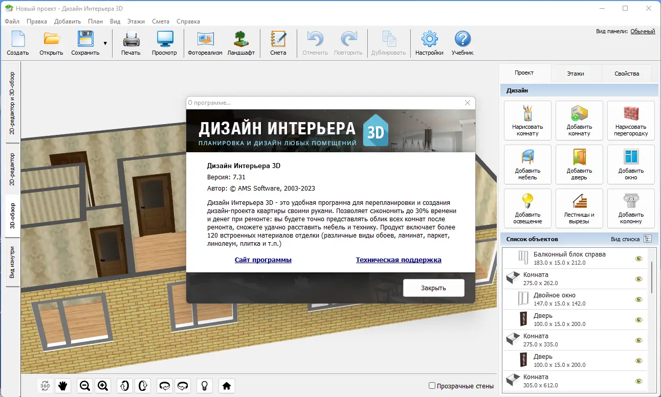 Программа доступна для установки на персональный компьютер с поддержкой 32 и 64-битных систем. Версия 7.31 включает обновлённые элементы мебели и улучшенную стабильность. Вы можете бесплатно на русском языке использовать все функции, включая проектирование, визуализацию и экспорт. Активация уже проведена, что упрощает процесс запуска. Ключ активации не требуется — программа бесплатно установится и будет готова к использованию. Хотя функция онлайн-обновлений отсутствует, локальная работа обеспечивает полную автономность. Скачать бесплатно можно в формате Repack, совместимом с современными операционными системами.